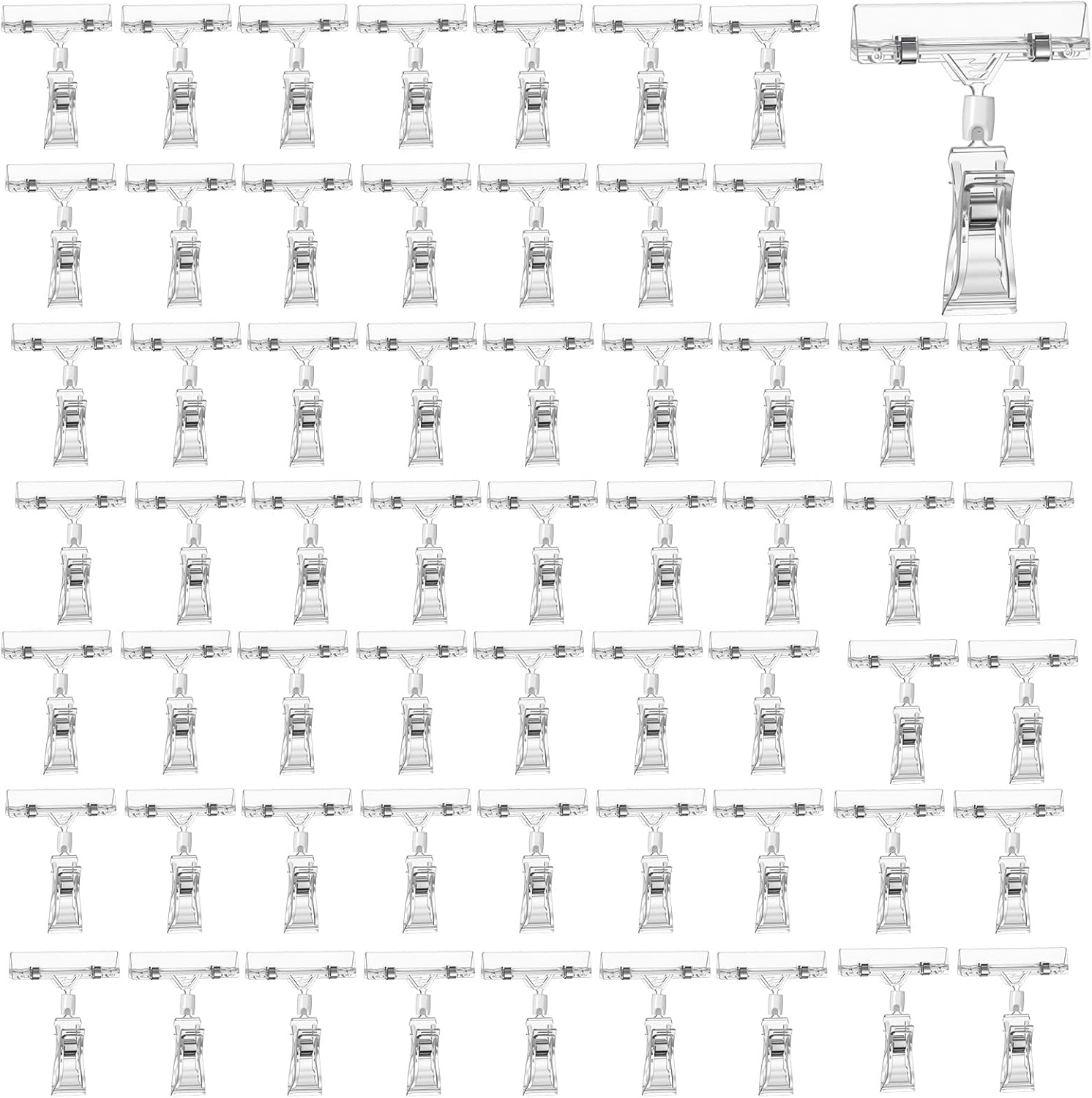 - Great Value: This package includes 60 packs of clear sign holder clips, providing enough clips for your daily use and replacement needs. You can combine these clip-on signs with any sale sign or other sign cards offered by supply stores, shopping malls, supermarkets, fruit shops, and retail stores to attract customers. Elevate your merchandising game and create an organized, professional display with these versatile sign clips.