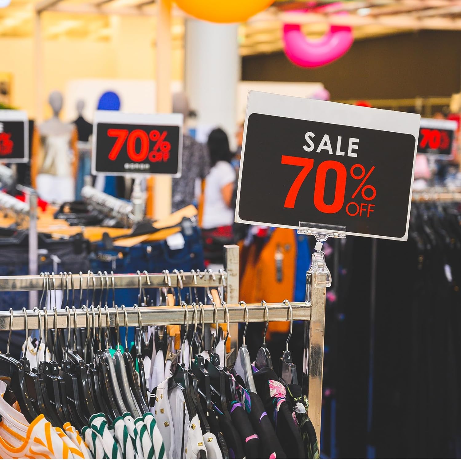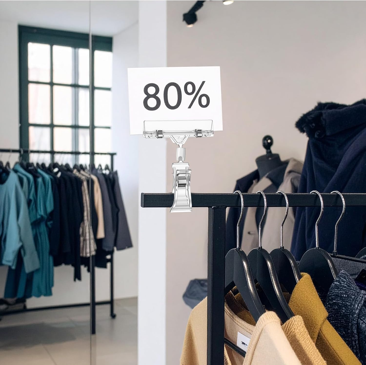 - Reassuring Quality of Details: Our sign holder clips are made of high-quality durable acrylic plastic material that is reusable, reliable, durable, clean, and adjustable. These sale sign holder clips for clothing rack rotatable design allow you to adjust the angle for optimal visibility, which can firmly fix label signs to 90° tilt or 360° rotate the sign in any direction you want to display. Ensuring your customers can easily view pricing and product information.