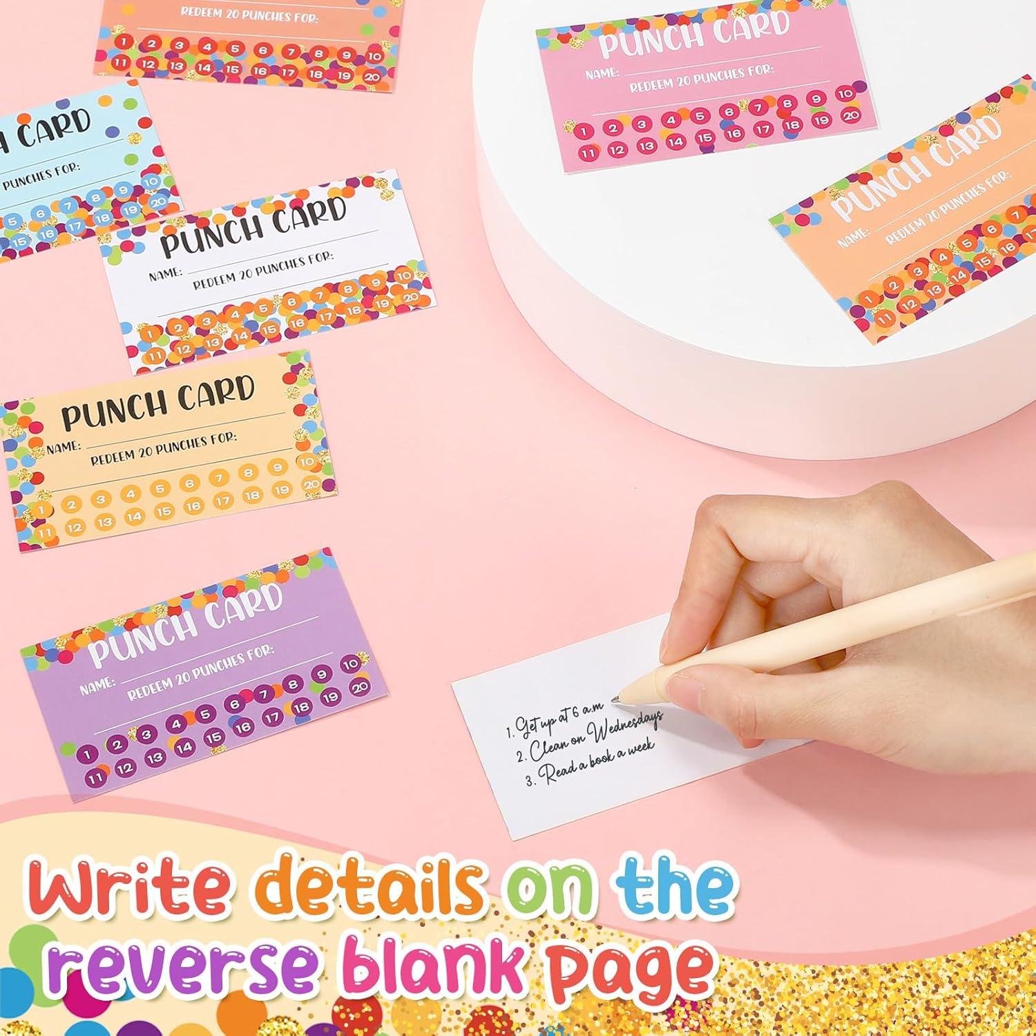 - Polka Dots Design: punch cards for kids at home has 8 different polka dots styles with vibrant patterns and colors, printed with letters like 'punch cards', 'redeem 20 punches for', etc., simple and generous; Vivid and eye-catching, blank back design allows you to send other messages to students; Punch design 1 to 20 score, you can punch in according score