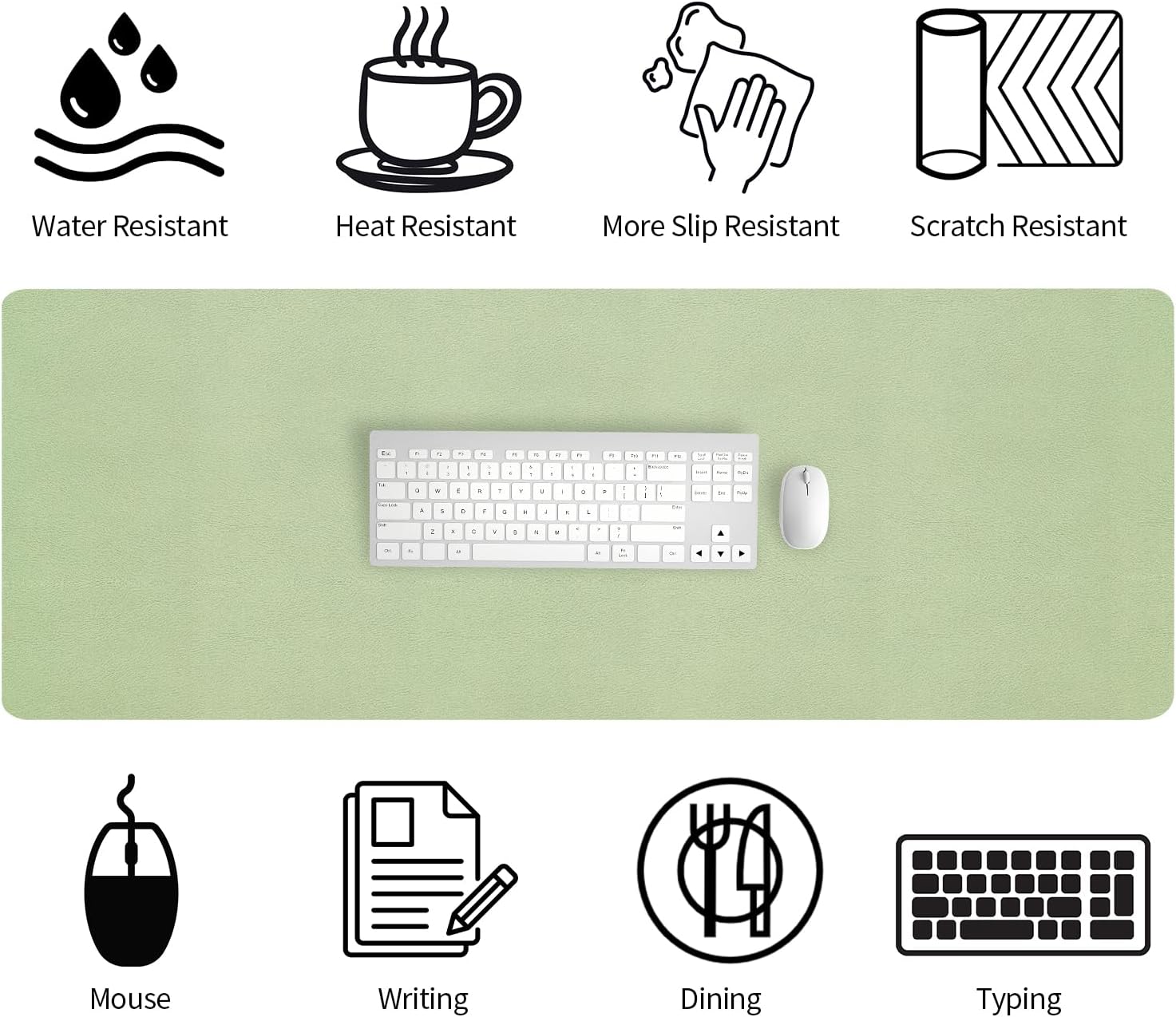 Bloss 47.2" x 16.9" Large Desk Mat, Leather Mouse Keyboard Pad, Non-Slip Writing Pad, Desk Protector for Office, Home - Light Green