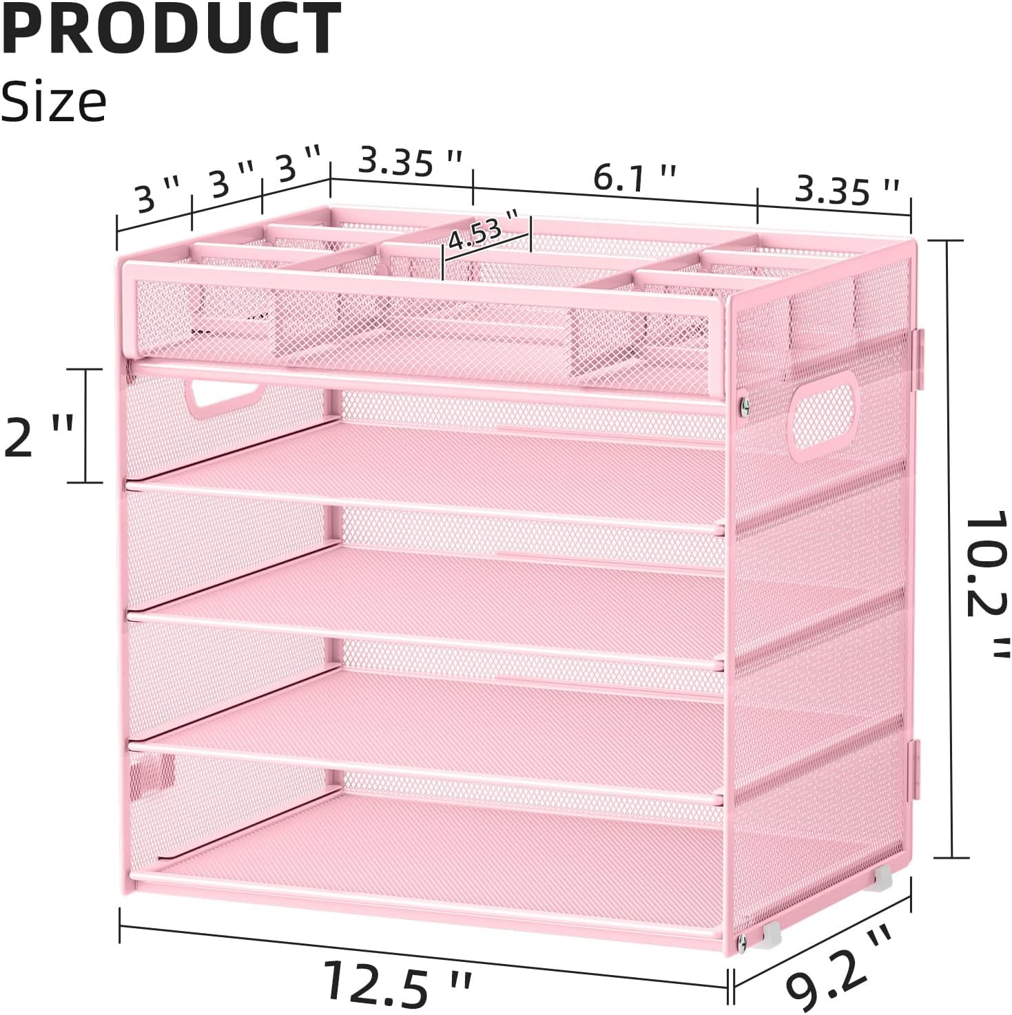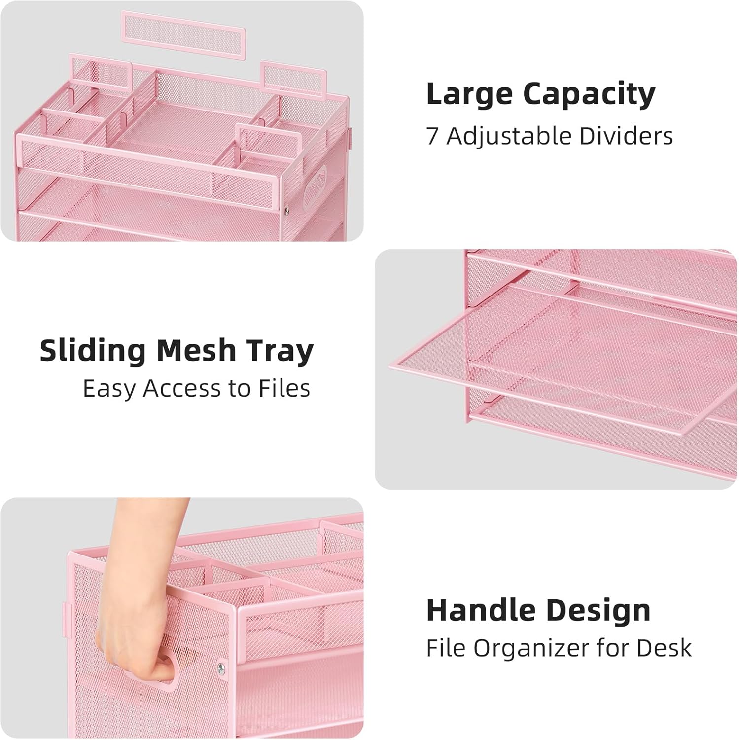 Marbrasse 5-Tier Letter Tray Paper Organizer with Handle, Multi-Functional Mesh File Organizer for Desk, Adjustable Compartments Mesh Desktop Storage for Office Supplies, Pink
