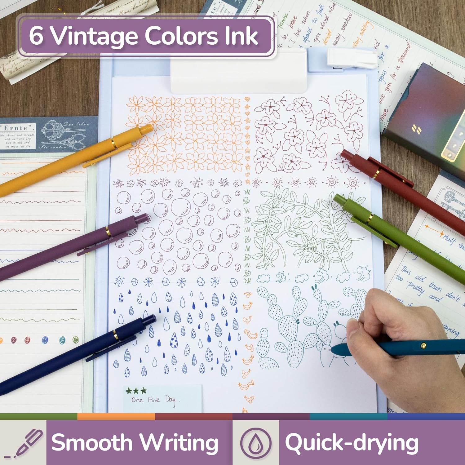 6 Pcs Color Pens for Journaling 0.5mm Fine Point Colored Gel Ink Pen, Smooth Writing Colorful Pens for Note Taking, Gift Set for Women & Men (6 Pcs Vintage Gold)
