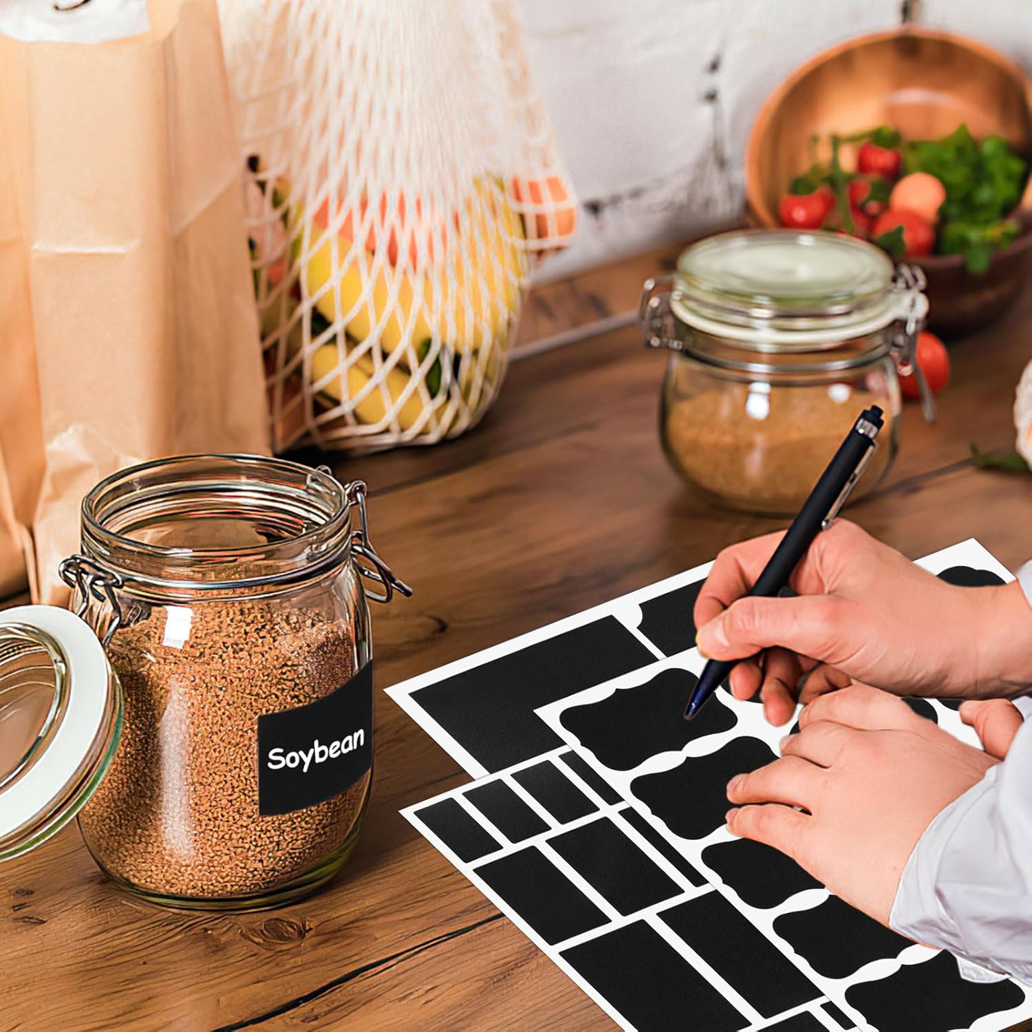 273 Pcs Labels for Jars, Waterproof Reusable Chalkboard Labels for Food Containers, Bottles, Blackboard Stickers with 1 Erasable Chalk Marker (Black)
