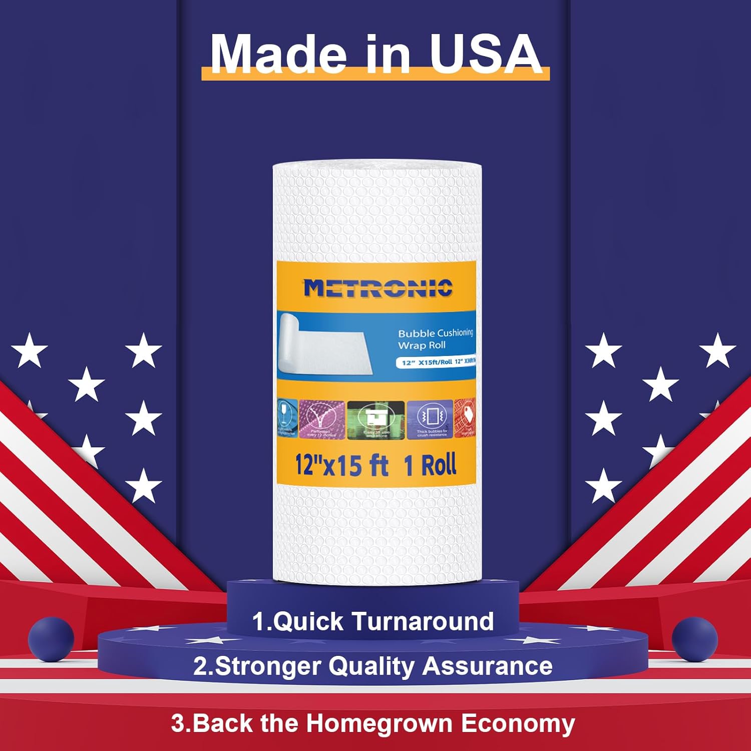 - New Upgarde Perforated Design Packing Materials --- Metronic Bubble Roll perforated Every 12" pouch. This packing bubble cushioning wrap comes with pre easy cross-cut tear where it allow convenient and flexibile to complete your job faster. Good for reduce wasting.