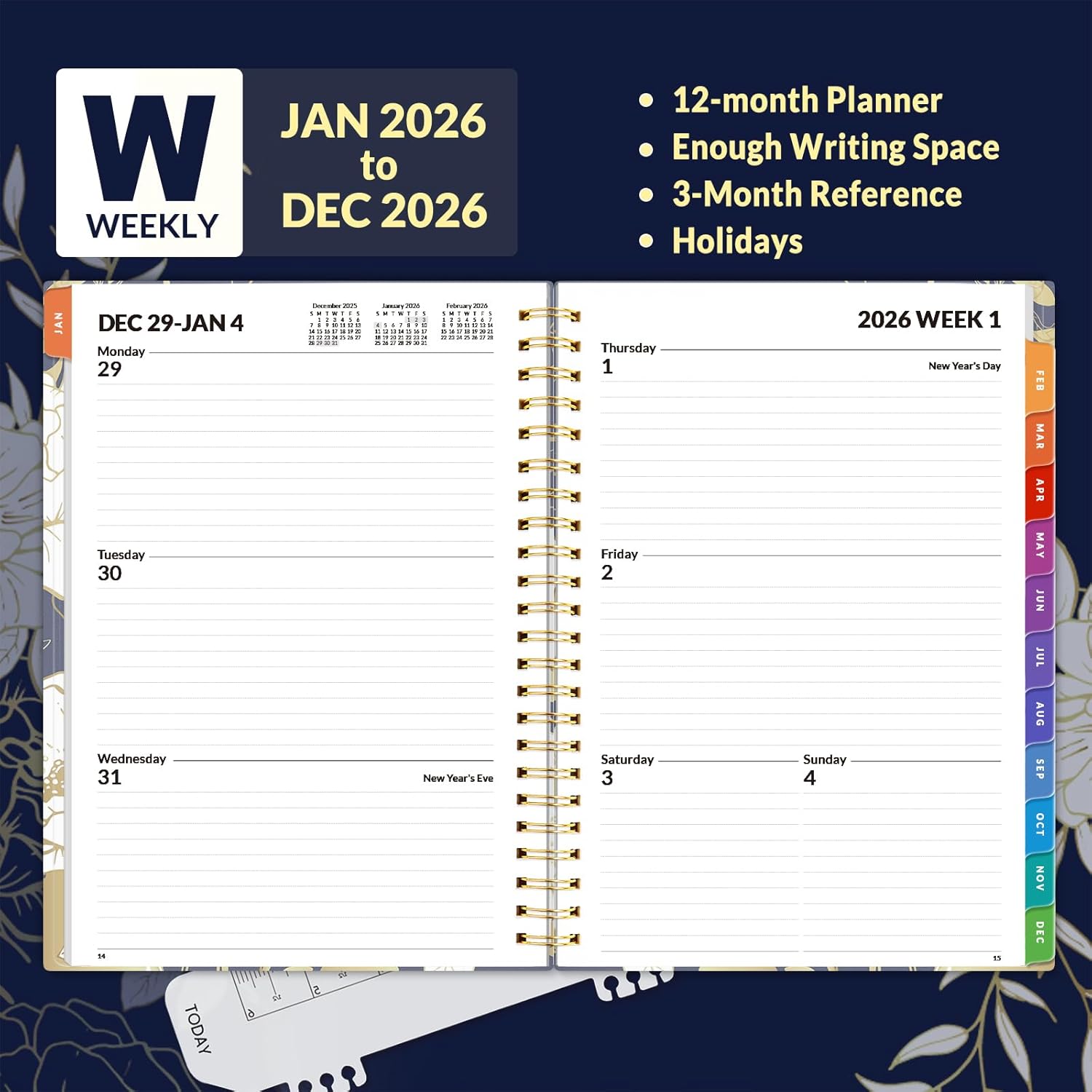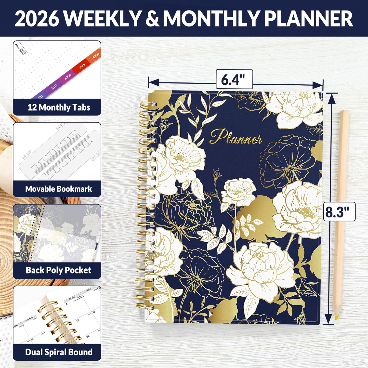 - 2026 Professional Planner - Cover from January 2026 to December 2026, Features 12 months of monthly and weekly pages, and also inclueds 3 extra monthly pages for October to December 2025 and 12-monthly tabs, with Lay-flat capability for all your planning and scheduling needs, and measures 6.4" x 8.3"