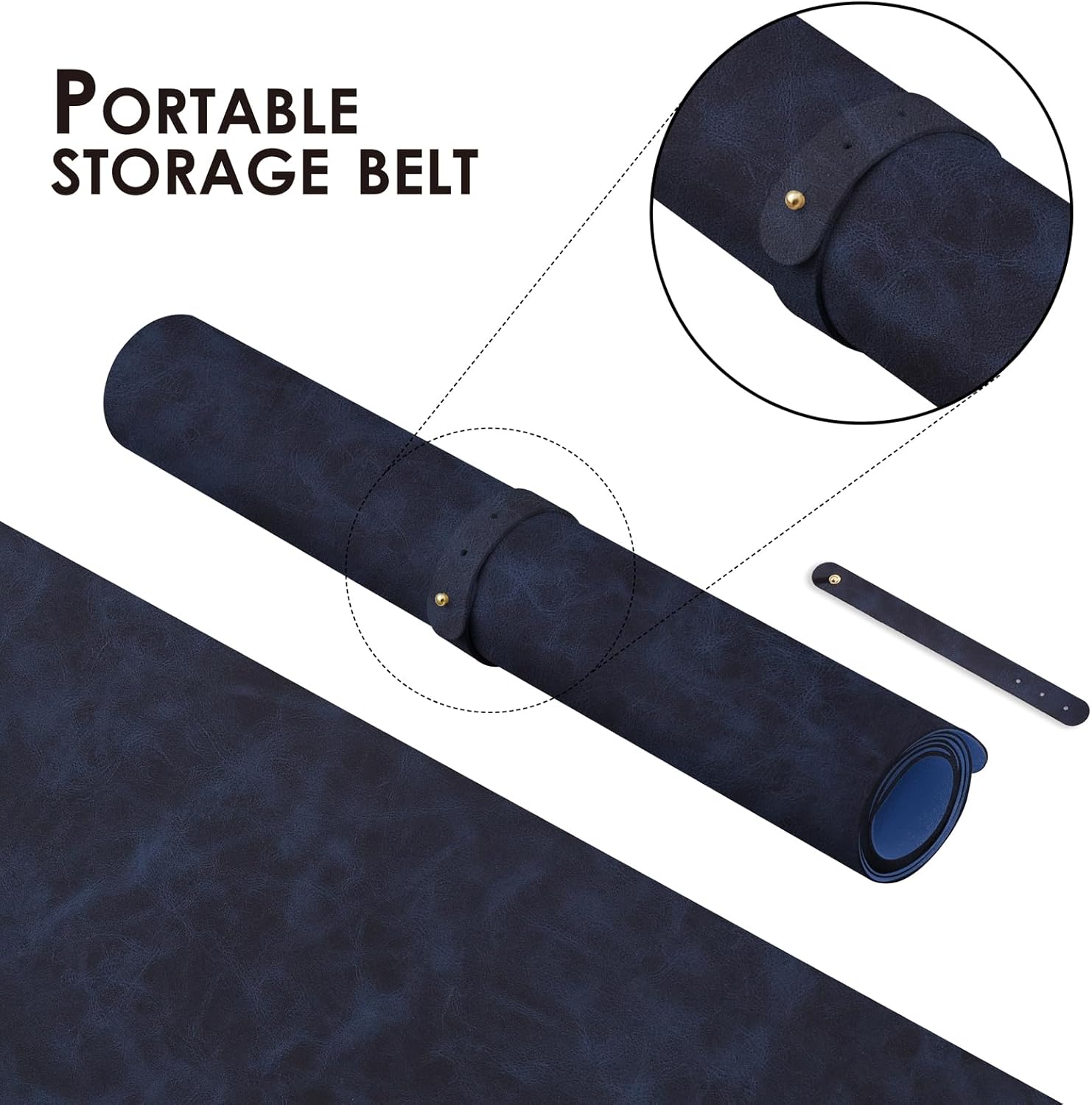 Distressed Leather Desk Mat - Non-Slip PU Desk Pad for Office and Home - Desk Organization and Accessories - Ideal for Large Mouse Pad and Desk Mats on Top of Desks(Navy Blue,31.5"x 15.7")