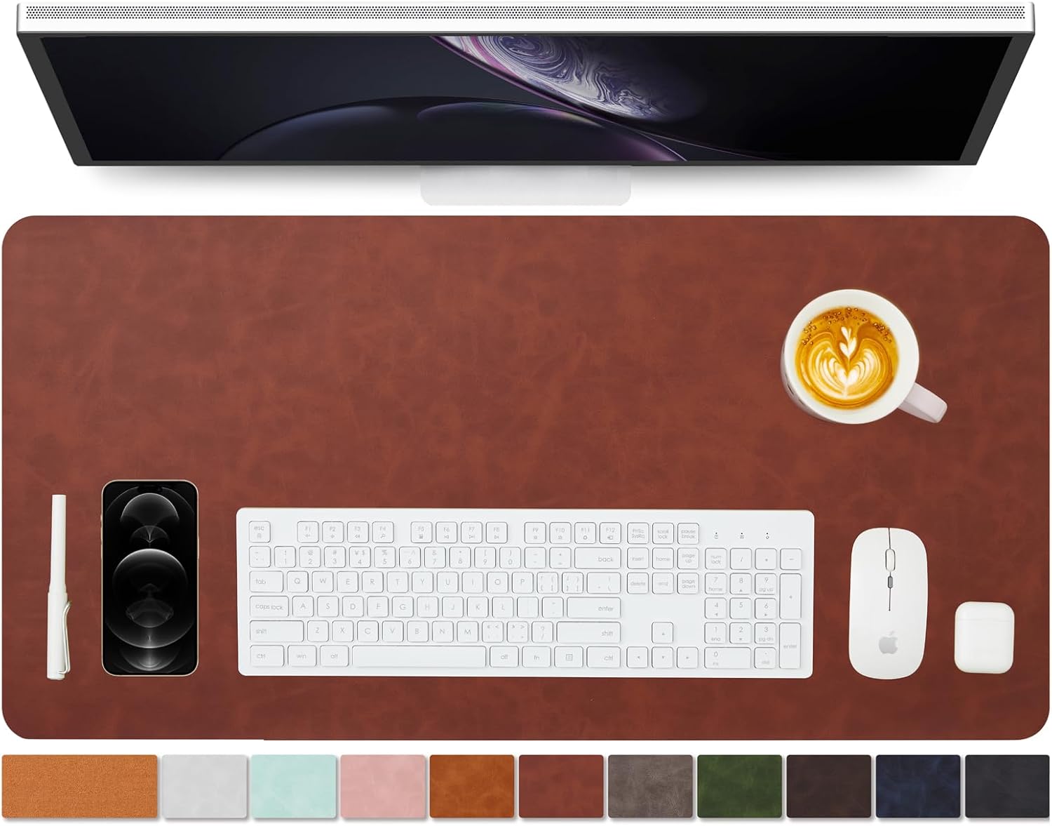 Distressed Leather Desk Mat - Non-Slip PU Desk Pad for Office and Home - Desk Organization and Accessories - Ideal for Large Mouse Pad and Desk Mats on Top of Desks(Mahogany,31.5"x 15.7")
