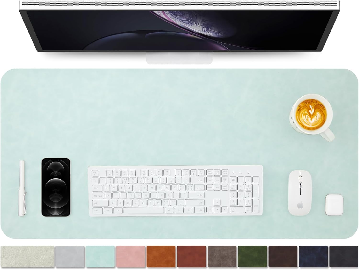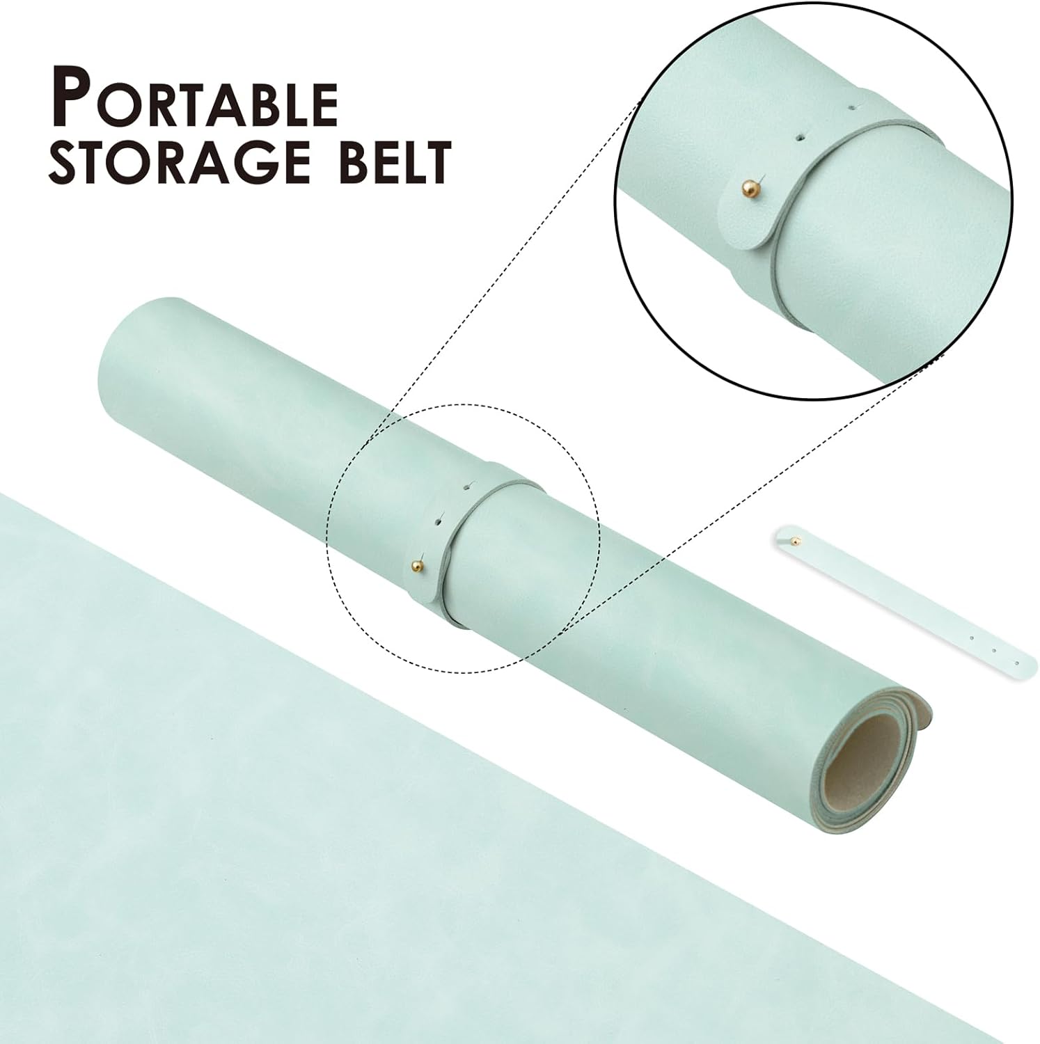 Distressed Leather Desk Mat - Non-Slip PU Desk Pad for Office and Home - Desk Organization and Accessories - Ideal for Large Mouse Pad and Desk Mats on Top of Desks(Mint Green,36"x 17")