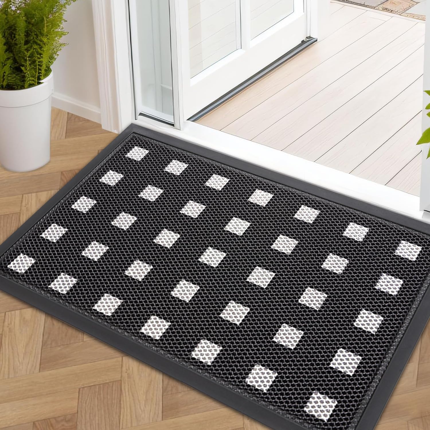 Front Door Mat Indoor Entrance 29.5"x17" for Apartments/Small Spaces, Heavy Duty Rubber Entryway Mats Backing Inside/Outside Dirt Trapping, All Weather Outdoor Rug Black and White