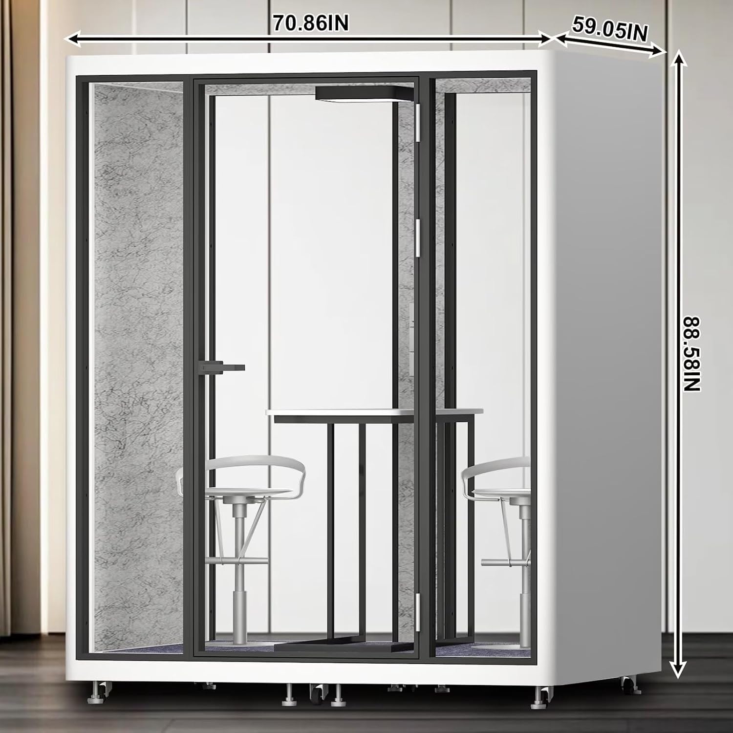 Office Sound Booth with Audio Privacy - Portable Soundproof Booth with White Modern Style,Movable Room with Light,Ventilation,Socket for Negotiation Room,Instrument Practice Room(70.86IN)
