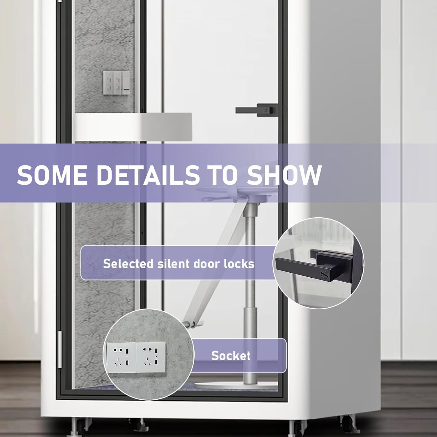 Office Sound Booth with Audio Privacy - Portable Soundproof Booth with White Modern Style,Movable Room with Light,Ventilation,Socket for Study,Singing Room,Telephone Booth(39.37IN)