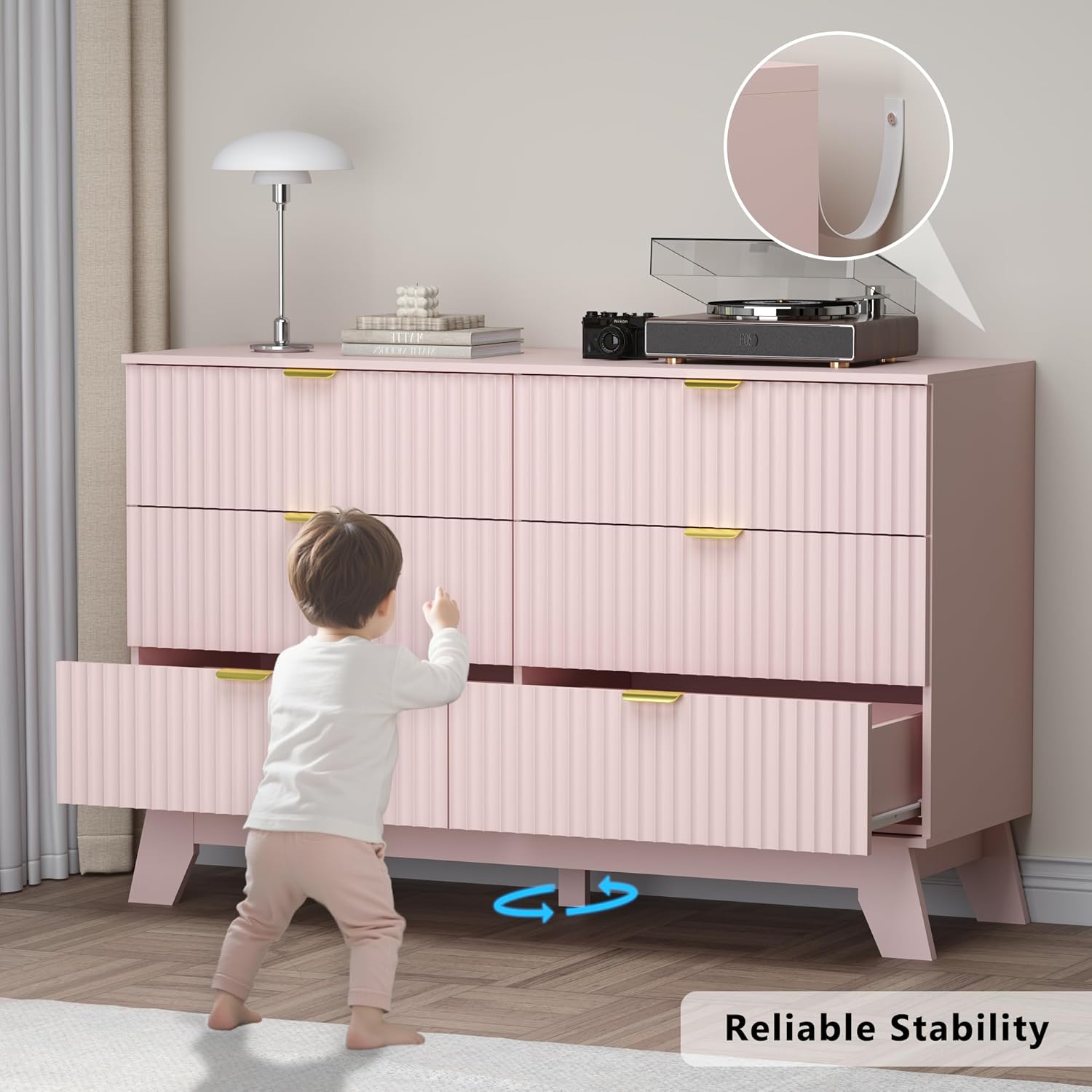 - Modern Fluted Design with Curved Elegance: Elevate your space with a sleek, wave-like fluted panel design and smooth, curved profile edges that combine modern chic with safety. BORNOON 6-drawer dresser enhances your bedroom furniture, living room, or hallway with its boho-inspired aesthetic. Combining elegance and functionality, this chest of drawers is a versatile addition to any space.
