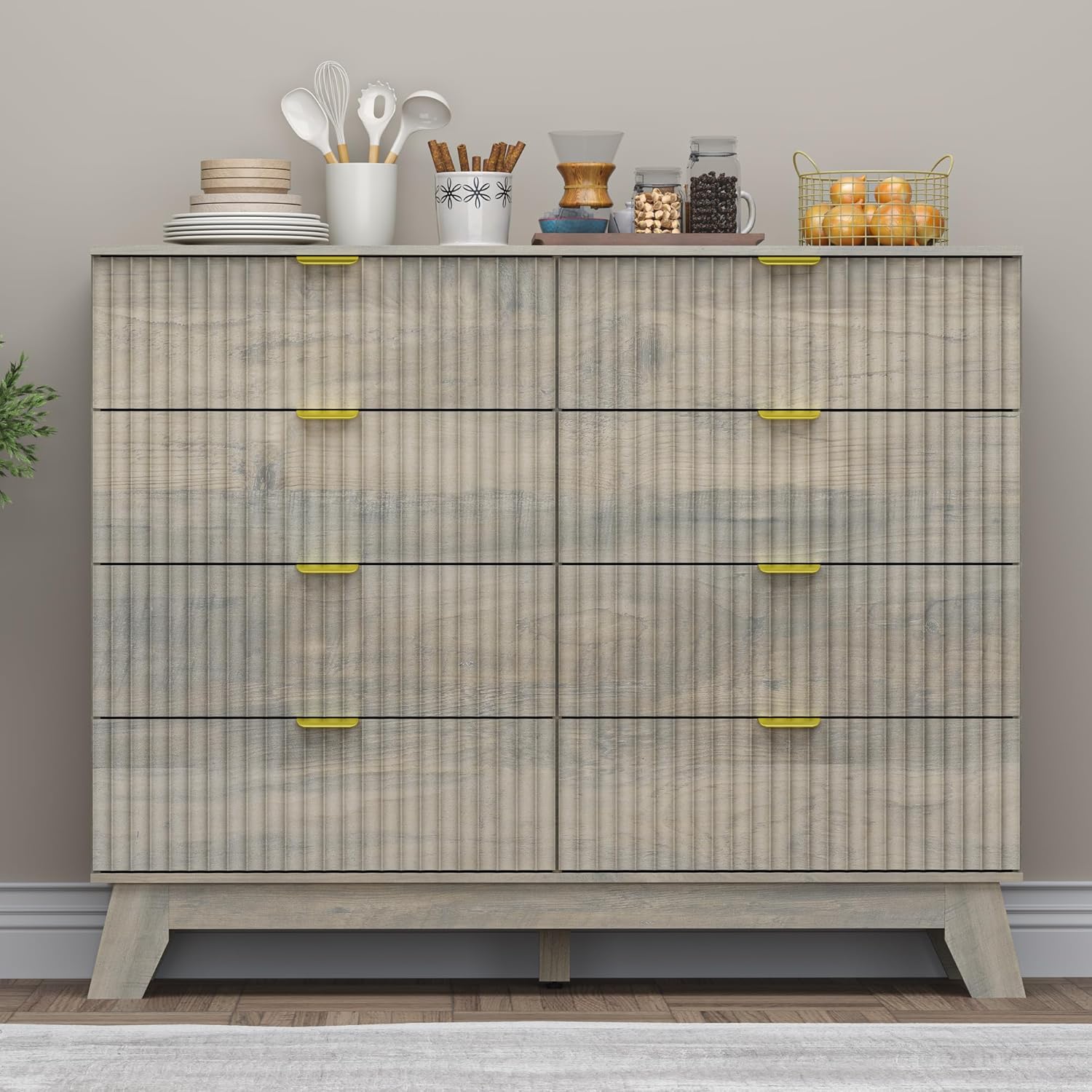 - Elegant Fluted Design with a Taller Profile: With its increased height and signature fluted paneling, BORNOON 8-drawer dresser provides both aesthetic appeal and functional storage. The curved edges offer a touch of modern elegance, making it a statement piece for bedrooms, closets, or entryways.