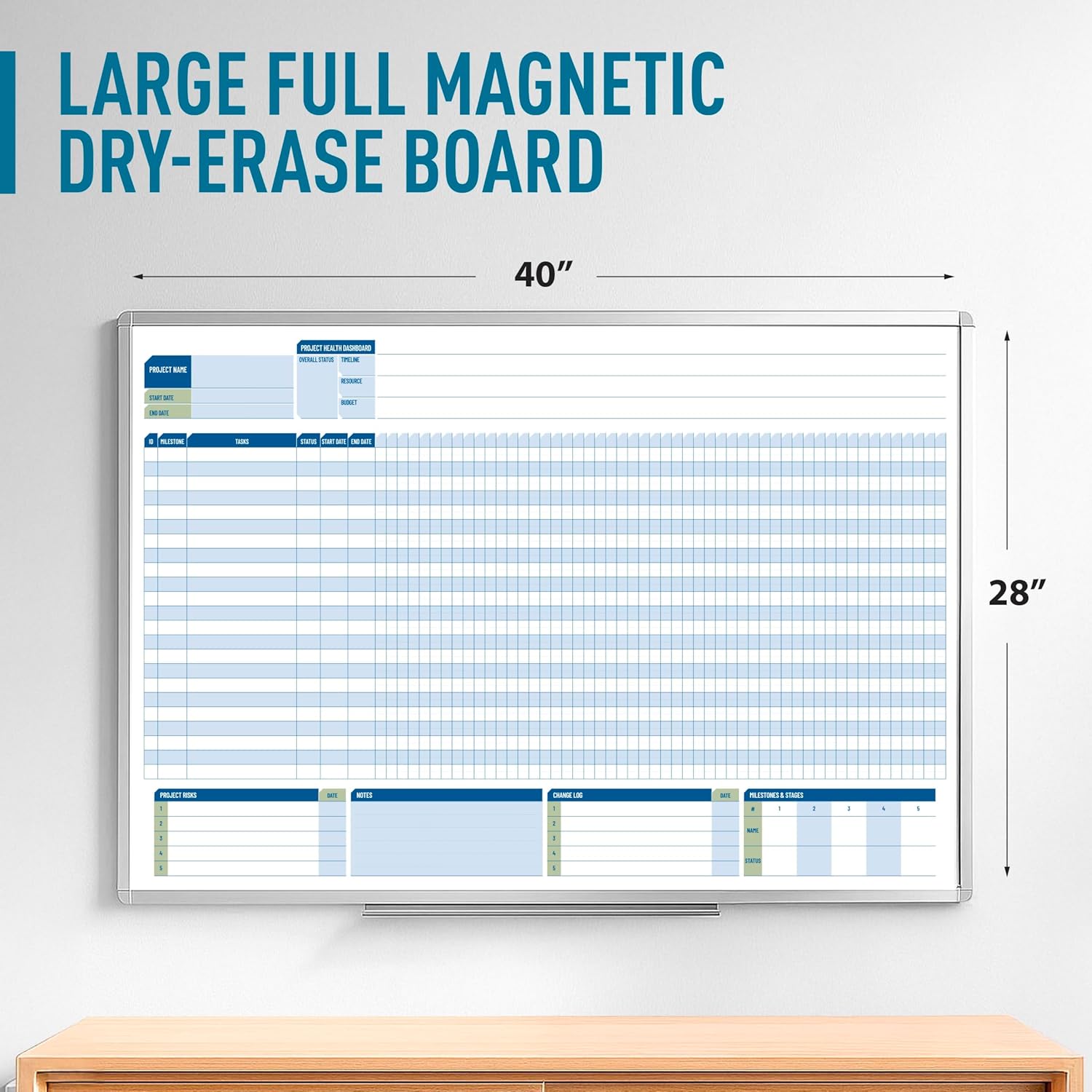 Business Gantt Chart Board – 40"x24" Professional Project Management Whiteboard with Tapes & Markers