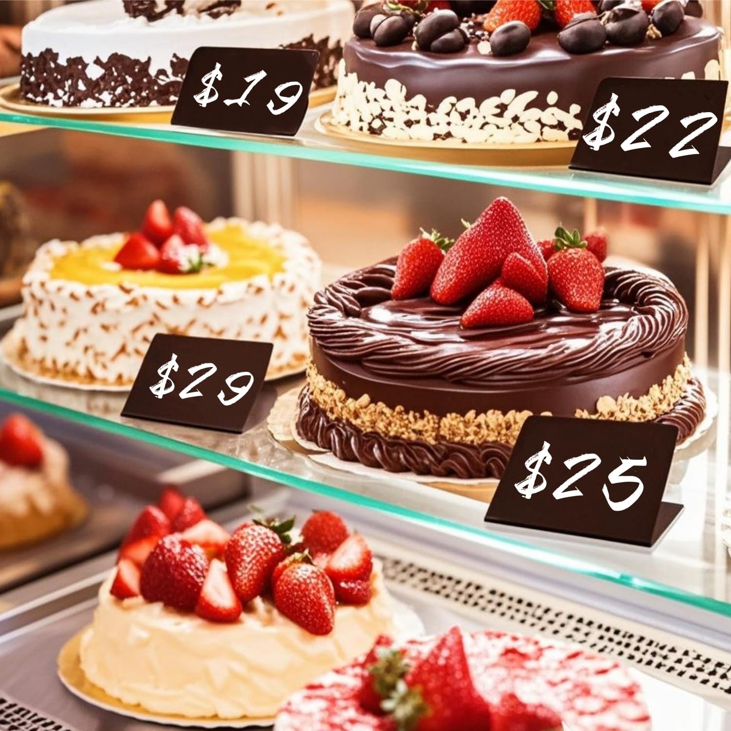 - STURDY CONSTRUCTION: The small chalkboard sign is made of dark matte black plastic material, sturdy and waterproof, not easily deformed or broken, each sign features V-shaped design that keeps it upright and visible, with a writing surface that's easy to read