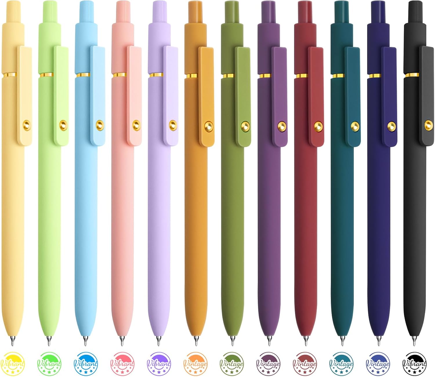 12 Pcs Color Pens for Journaling 0.5mm Fine Point Colored Gel Ink Pen, Smooth Writing Colorful Pens for Note Taking, Gift Set for Women & Men (12 Pcs Vintage & Vibrant Gold)