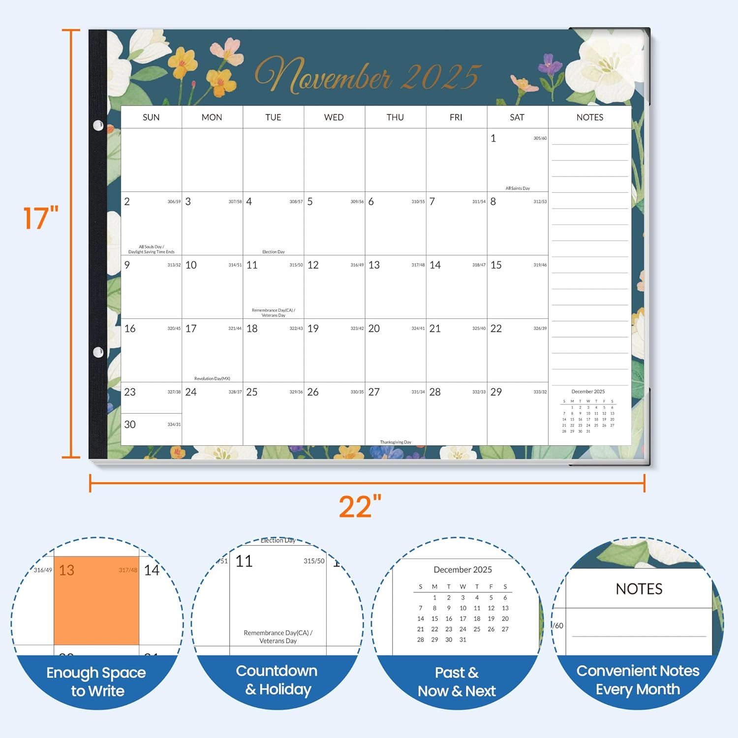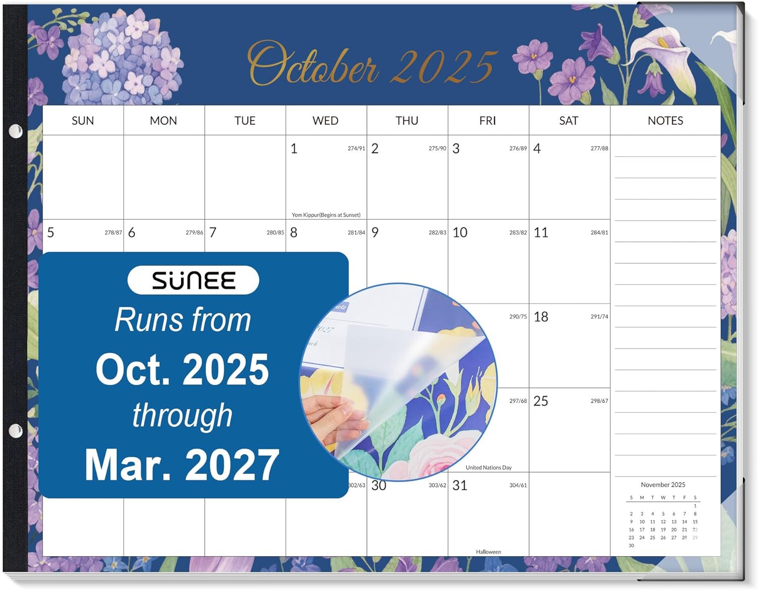 SUNEE Large Desk Calendar 2025-2026 22x17 from October 2025 to March 2027, Extra Large Desktop Monthly Calendar Pad 18 Months For Teacher or Family, Desk Top, Floral