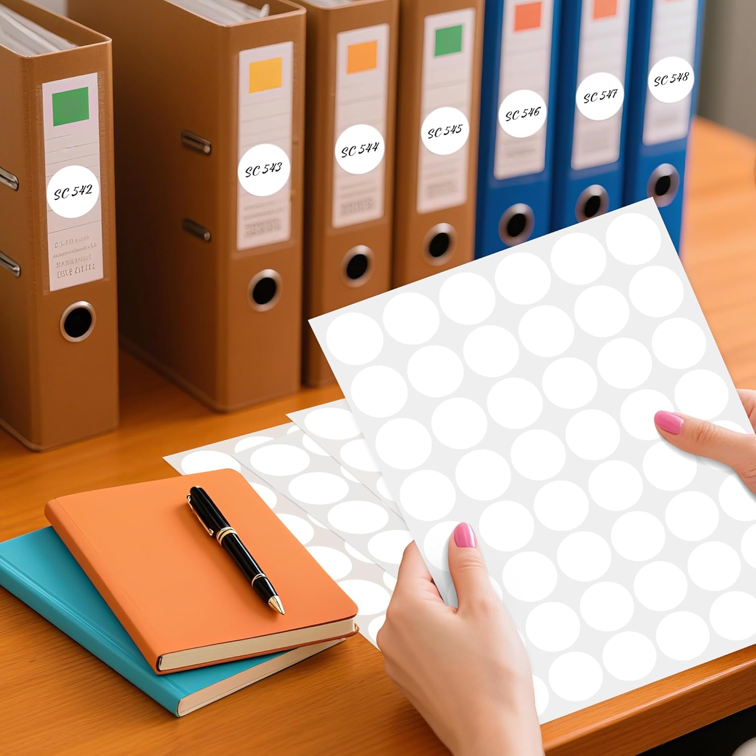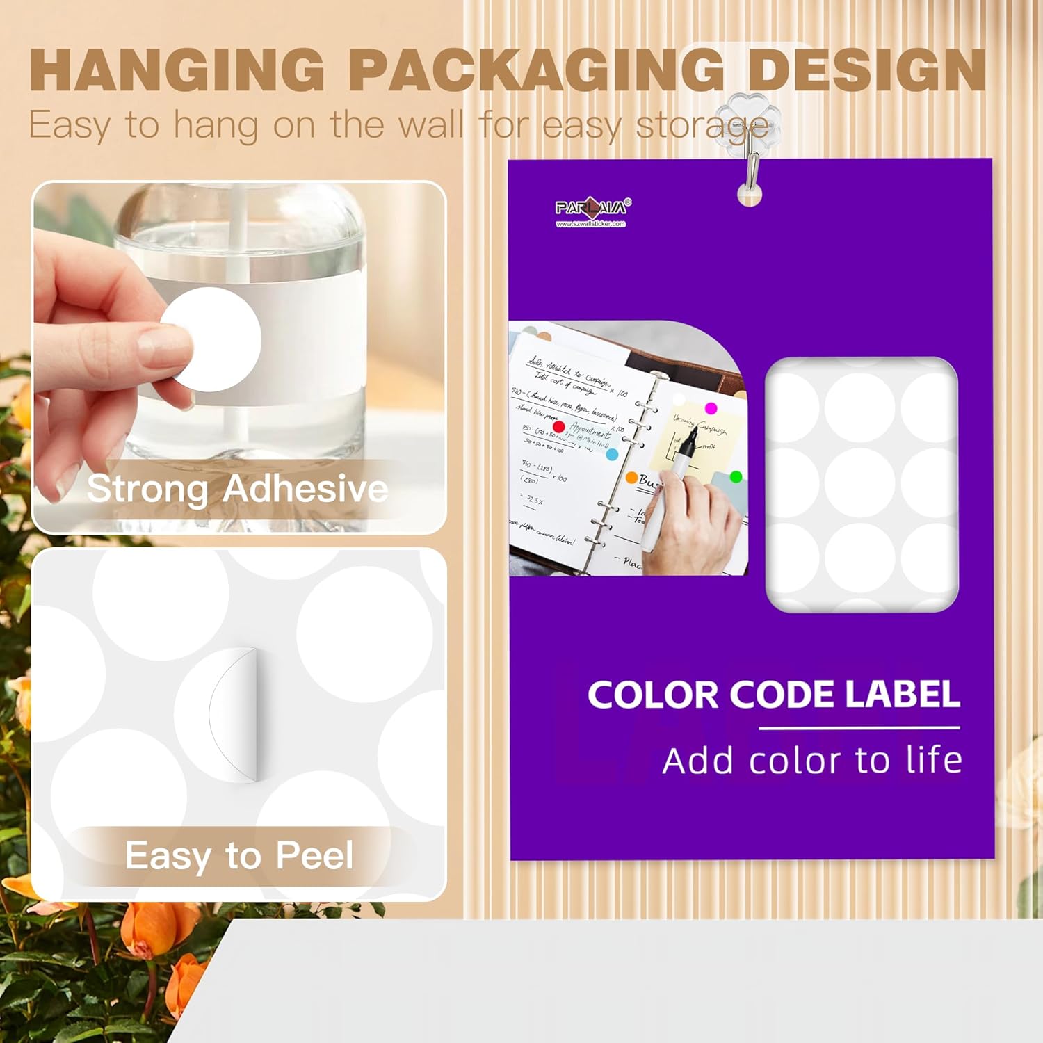 PARLAIM 1 inch Round White Dot Sticker,720PCS Permanent Adhesive Color Code Circle Sticker Labels for Office Classroom Garage Sale