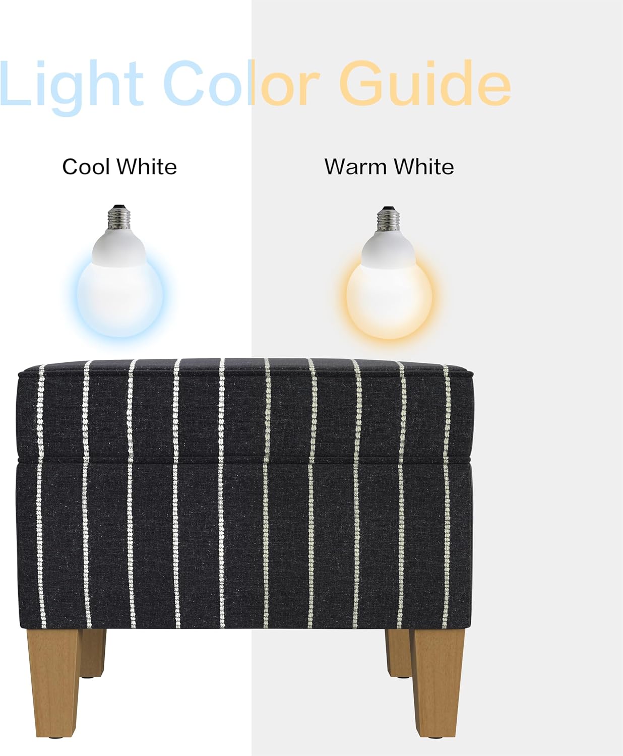 - Stylish & Functional Design – This Spatial Order Rectangular Storage Ottoman features a modern black with bouclé stripe fabric, complemented by honey oak-finish wooden legs, adding a sleek and timeless look to any space.