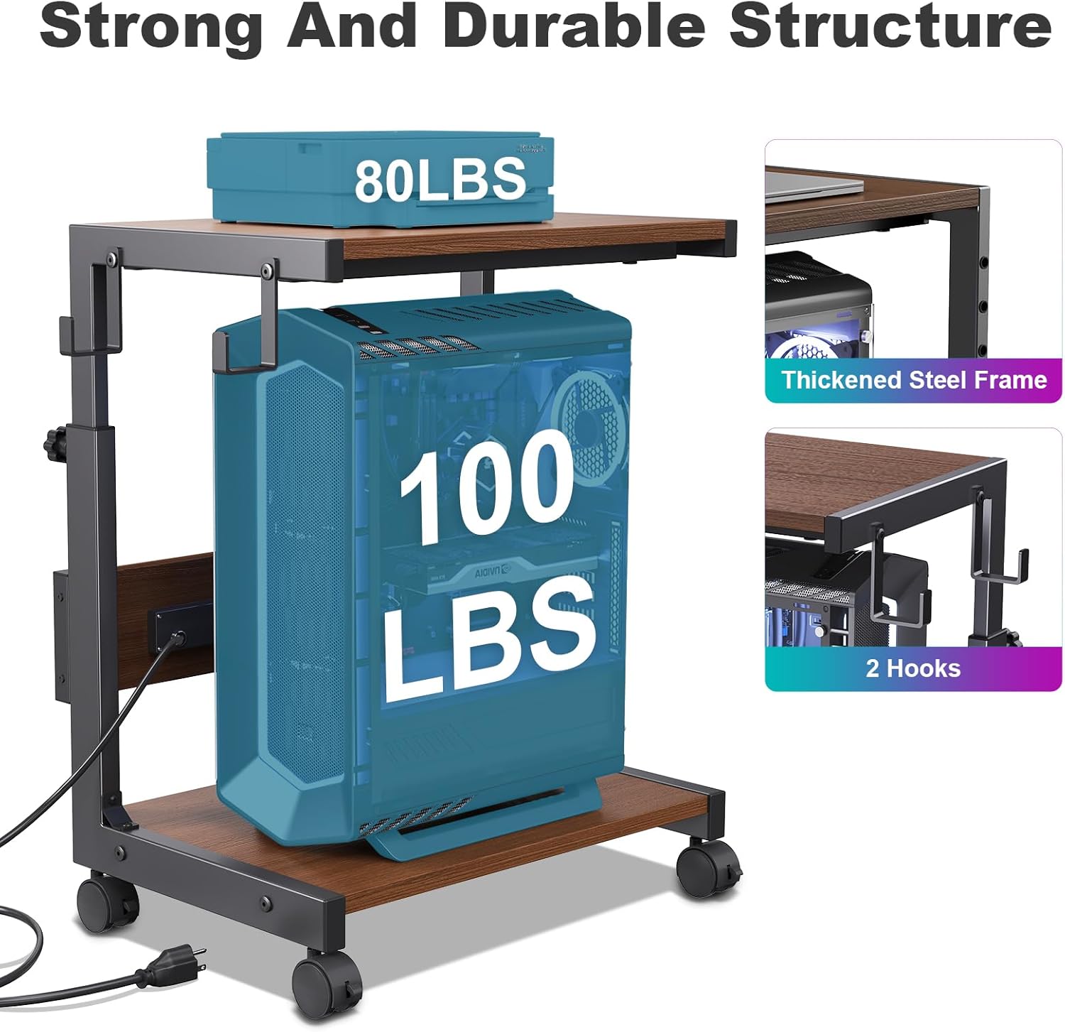 - Pc Tower Stand With Charging Station: This Mobile PC Standing with dual 120V/12A outlets and dual USB ports can power your laptop, smartphone, printer, tablet or any electronic device. Great for keeping an organized workspace. Plus, the PC Tower Rack doubles as a side table to provide additional power for your desk lamp