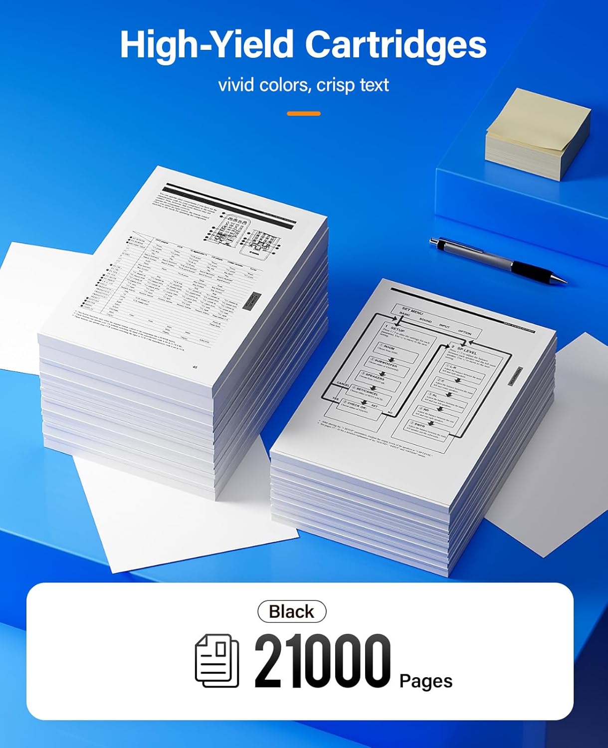 - High Yield Pages:Up to 21,000 Pages per toner cartridge (A4, 5% Coverage).