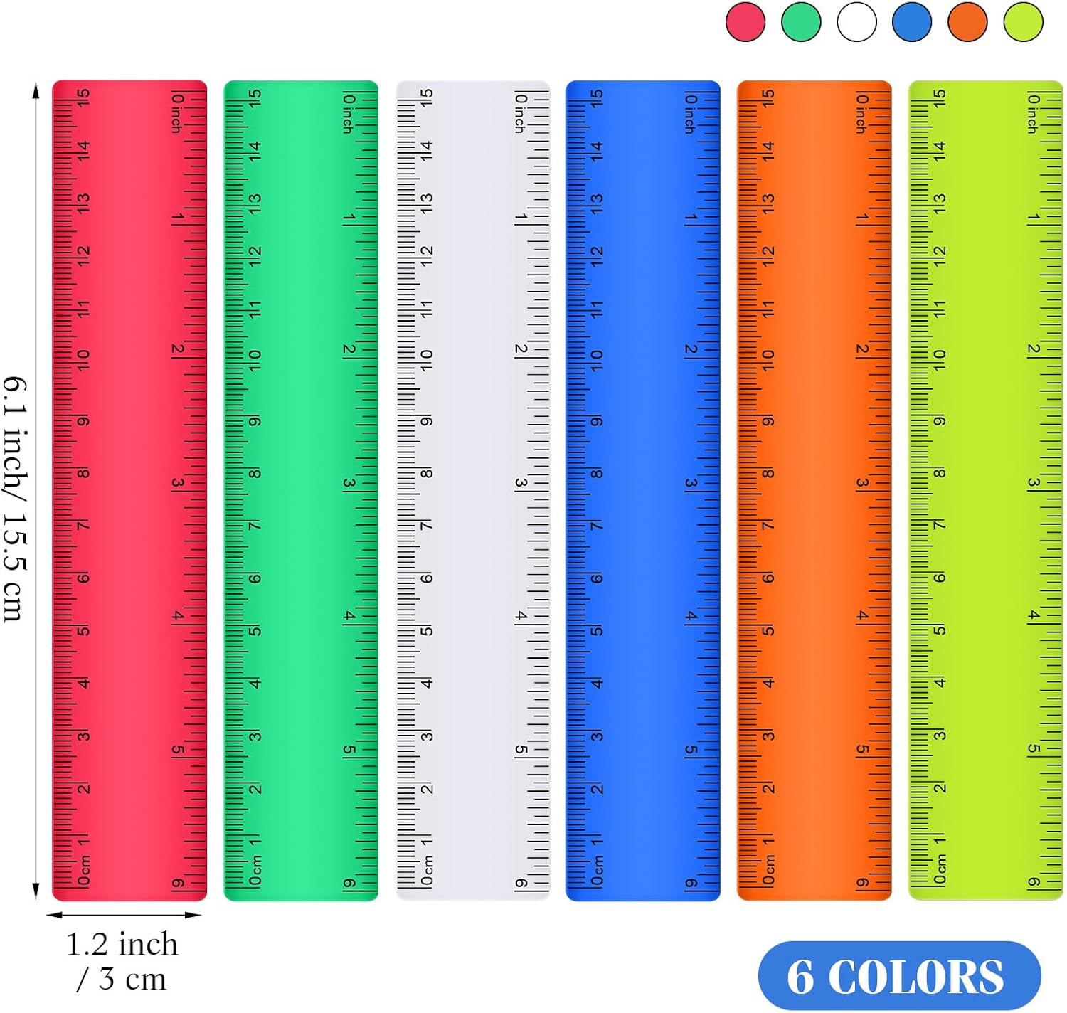 Zonon 6 Pcs 6 Inch Ruler Bulk Colorful Plastic Flexible Straight Metric Rulers with Centimeters and Inches Drafting Measuring Tool for Classroom School Students Education