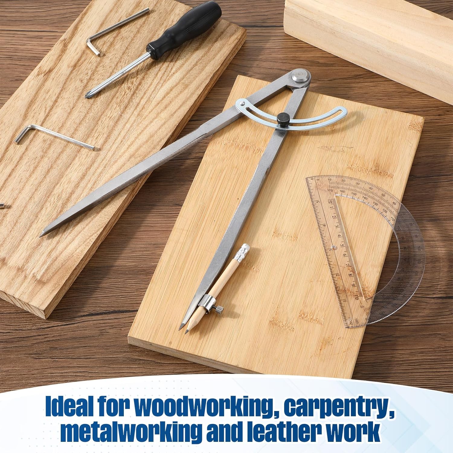 Zonon Professional 12 Inch Large Compass with Wing for Woodworking and 6 Inch Protractor Set, Pencil Compass for Geometry Math Carpenter, Drafting, Drawing Tool