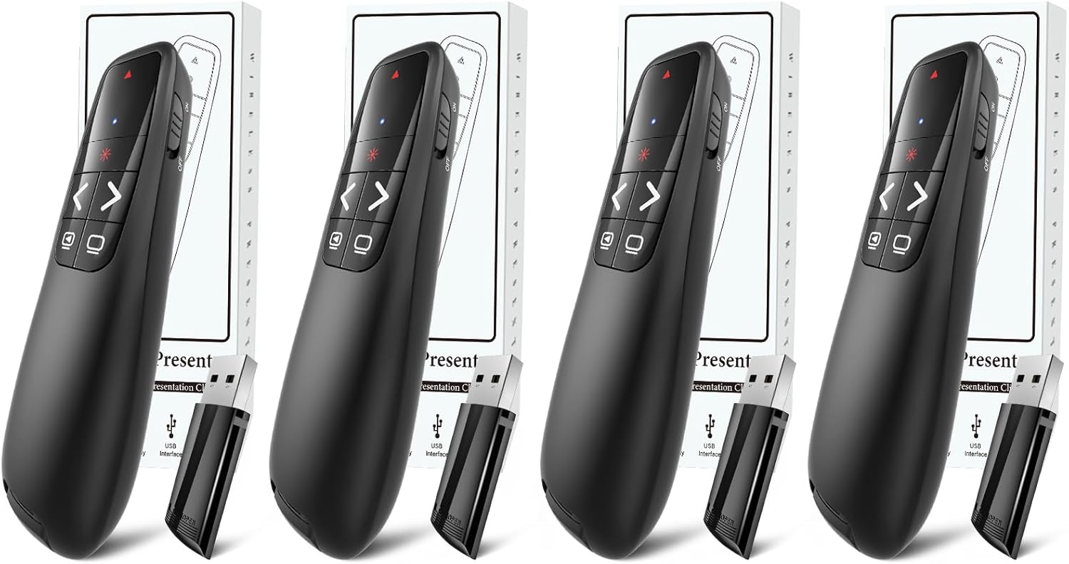 (4 Units) Wireless Presenter Remote, Clicker for Laptop PowerPoint Presentations Pointer, RF Computer Clicker for Presentations Remote, Slideshow/Smartboard/College/Classroom/PPT Clicker