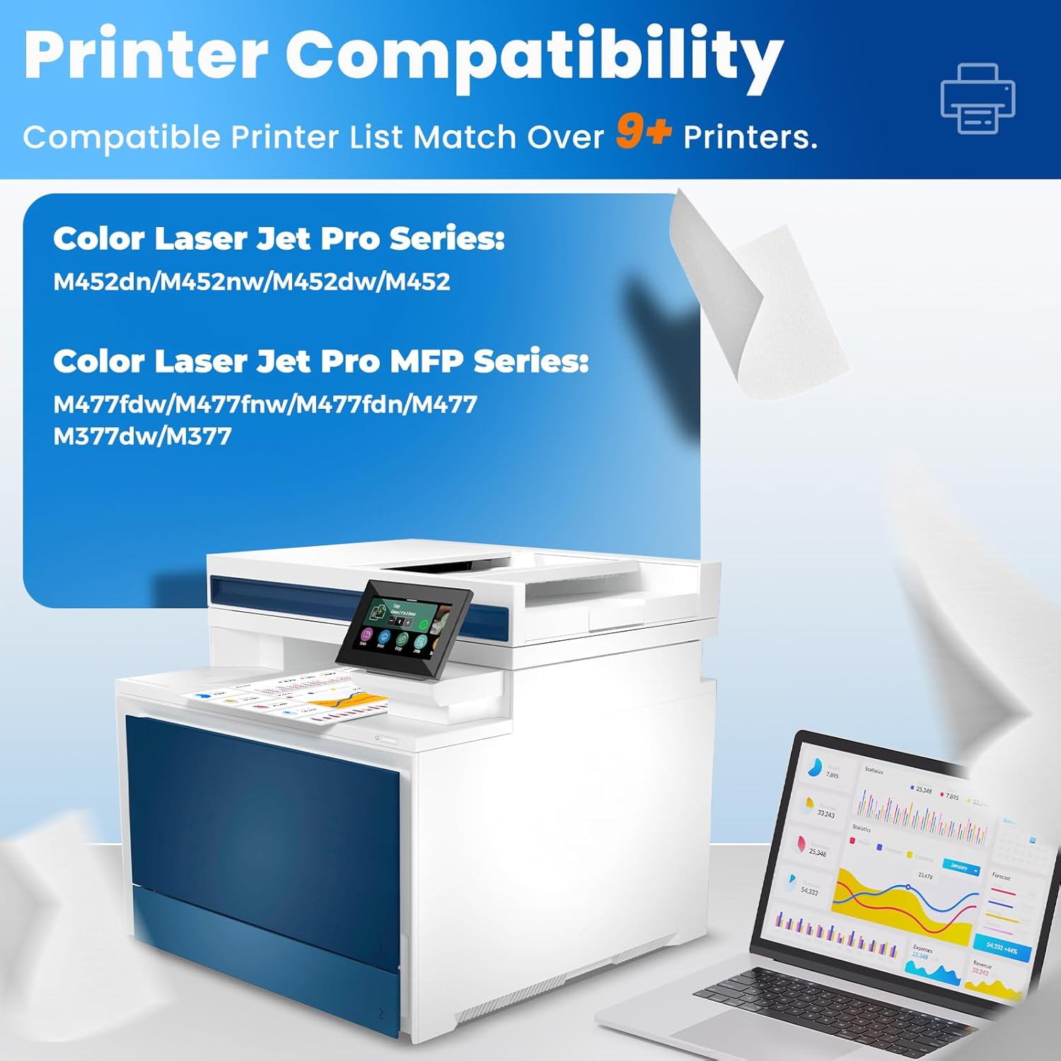 - Match Multiple Printers: 410A 410X toner are compatible with HP Color Laser jet Pro MFP M377dw, M477fdn, M477fdw, M477fnw, Laser Jet Pro M452dn, M452dw, M452nw printer