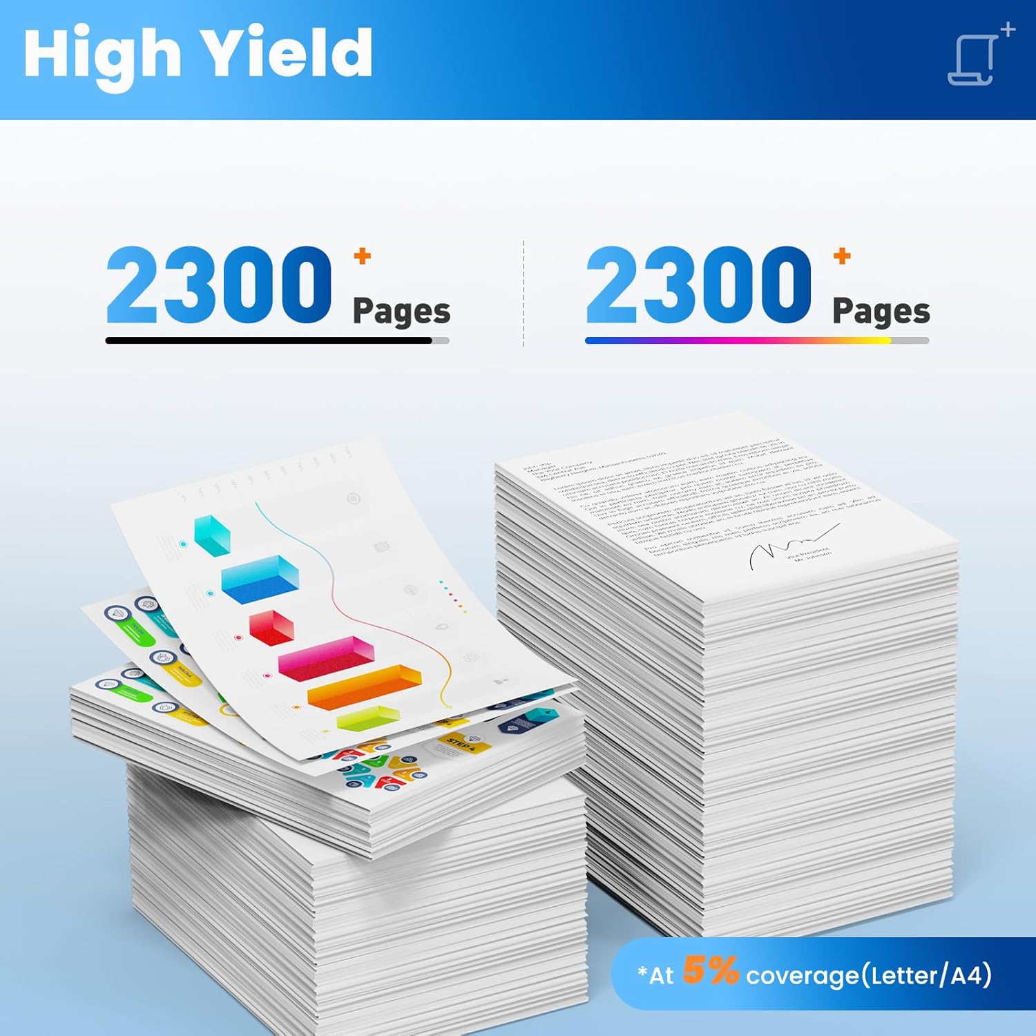 - 410A Toner Cartridge Yield (approx.): 410A toner cartridges 4 pack high yield up to 2,300 pages per 410A black toner cartridge, 2,300 pages per 410A color toner cartridge (Letter/A4, at 5% Coverage)