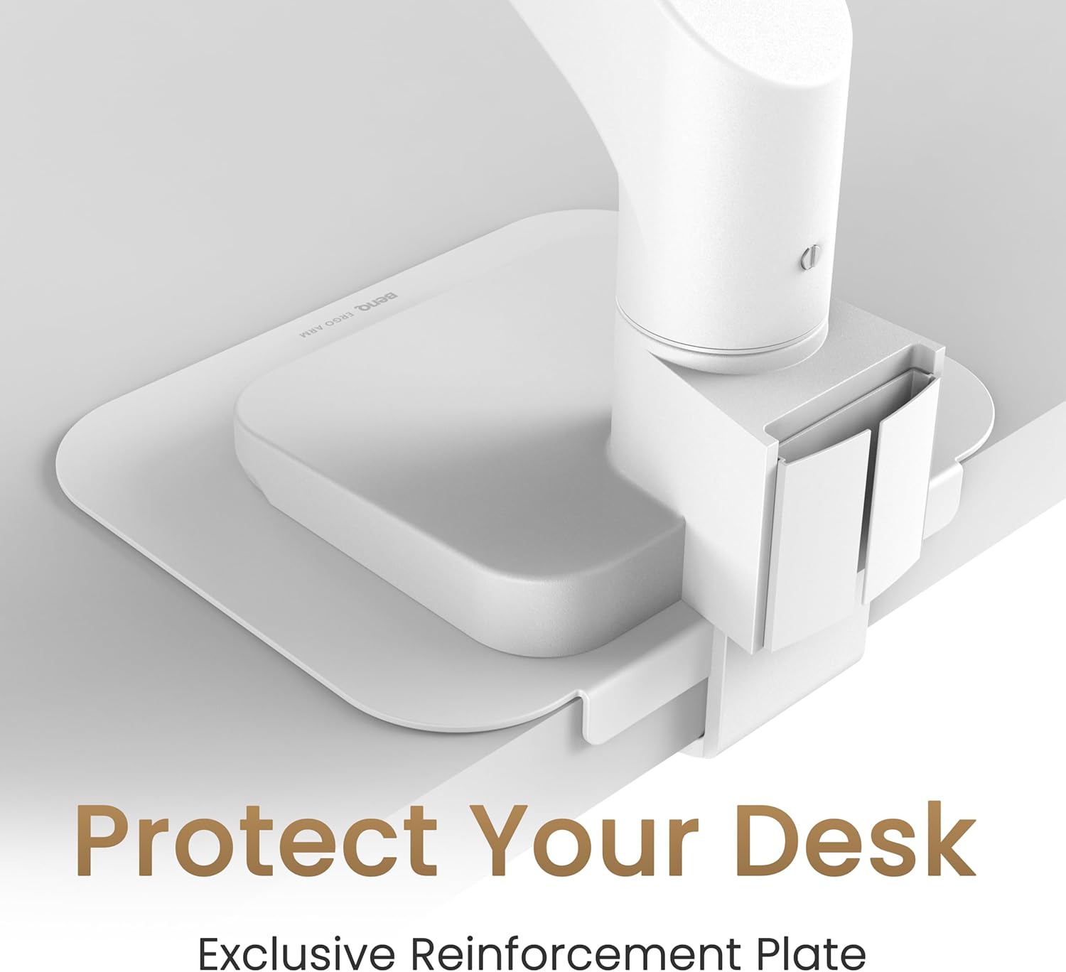 BenQ BSH02 Ergo Monitor Arm -Gas Spring Monitor Stand for Up to 45'' & 44lbs Screens, Heavy Duty, Quick Installation, No Sagging, Top Clamp and Grommet Base, Reinforcement Plate, VESA 75x75 &100x100mm