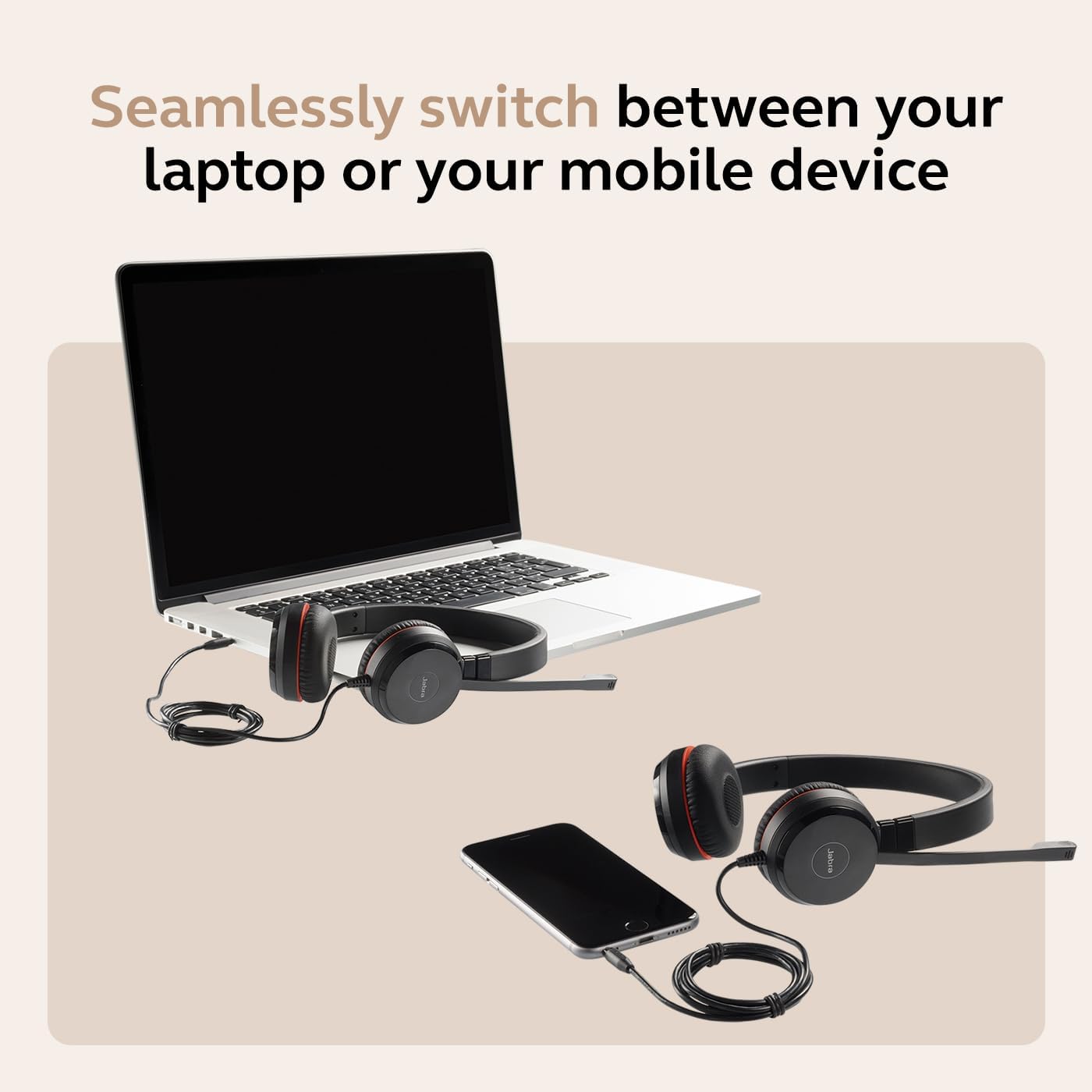 Jabra Evolve 30 II Wired Dual-Ear Headset with Mic for Work - 3.5mm Jack or USB-A/USB-C Connectivity, Computer Headset with Noise-Cancelling Microphone, Microsoft Teams Certified, Call Control – Black