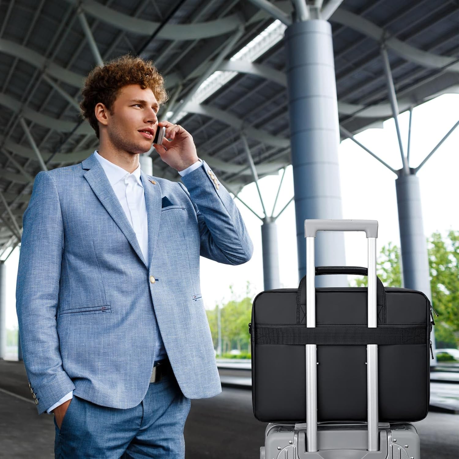 - Portable & Stylish: Comfotable PU handle for easy carrying, detachable and adjustable shoulder strap to suit different heights, back luggage strap for keep your hands free, this laptop bag is perfect for travel business work office.