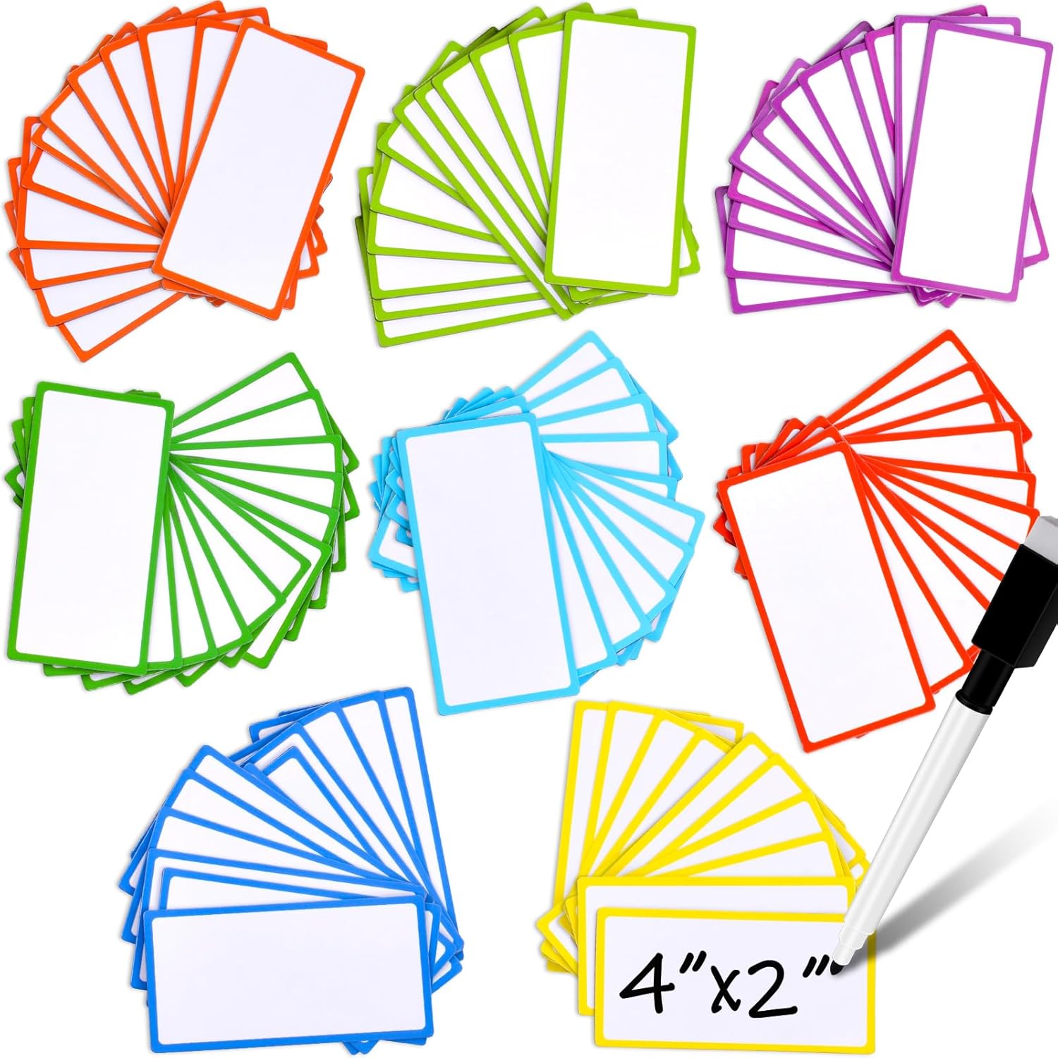 80 Pack Magnetic Dry Erase Labels 8 Colors 4"x2" Magnetic Labels Reusable Strips for Classroom, Office, Cabinet, Write On Magnets Sticker Writable Erasable Name Tags for Fridge
