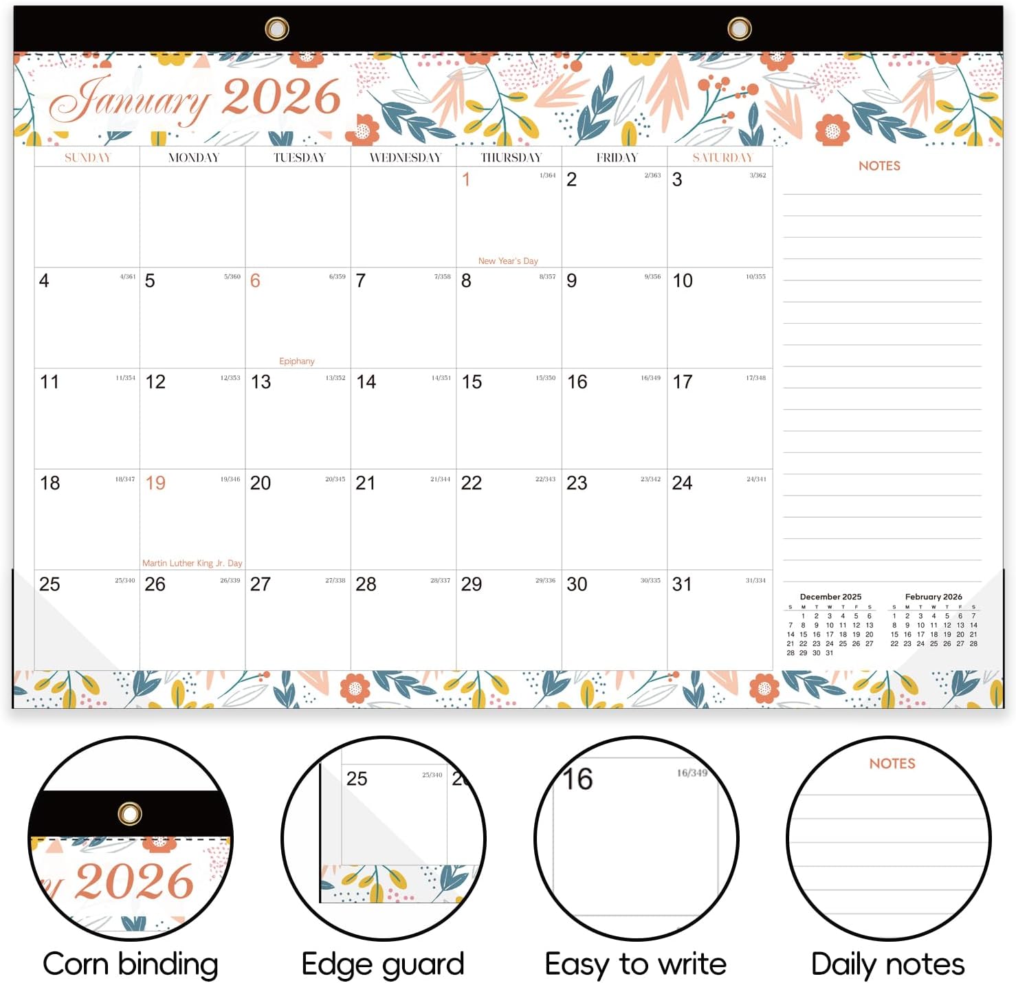 - 【12-Month Extended Planning】The desk calendar seamlessly from Jan 2026–Dec 2026 with a spacious 17”x12” layout, ideal for long-term goals, academics, or work.