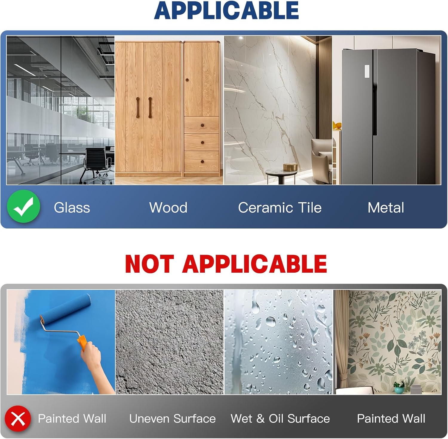 - 【 Pro Tips for Perfect Results】 Avoid Flat-Paint Walls/Fabrics: Includes test patch to verify surface compatibility pre-use. Optimal Surfaces: Bathroom tiles, locker doors, shop windows, and laminate furniture