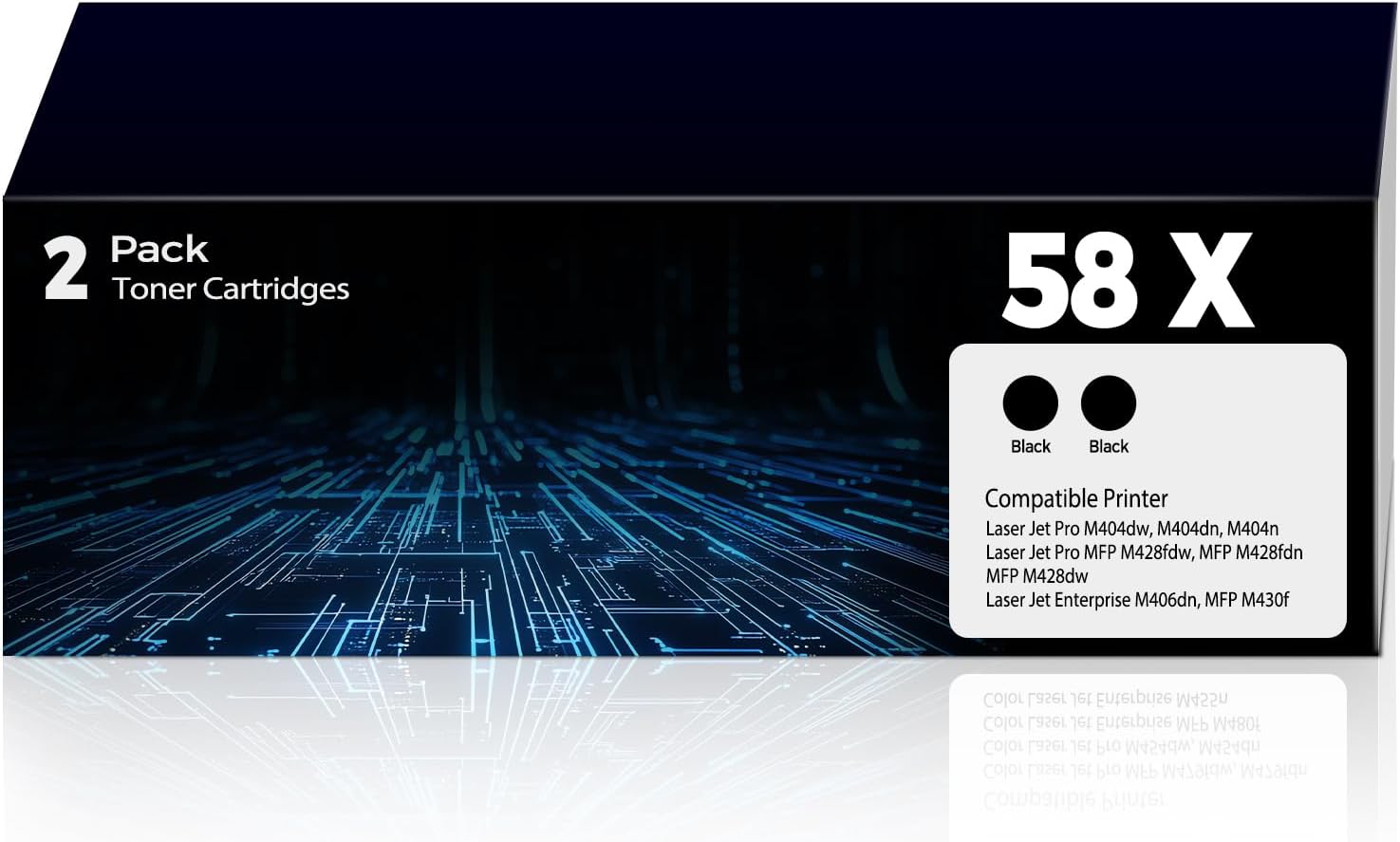 58X Toner Cartridge Black Laser Jet Pro M404dw Enterprise M406dn Compatible for HP 58X Toner Cartridge Compatible for MFP M430f M404dn M404n MFP M428fdw MFP M428fdn MFP M428dw M404dw Printer (2 Pack)