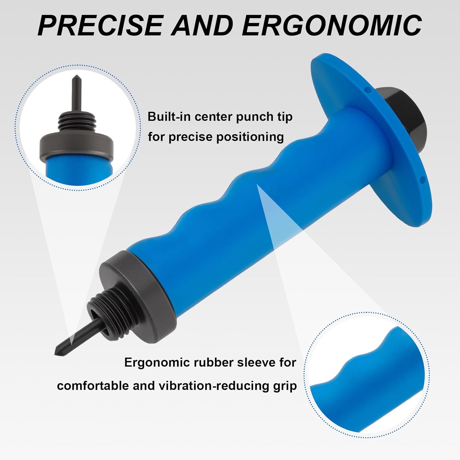 - Integrated Center Punch:The center punch features a handle with a built-in, spring-loaded center punch that has a pilot tip for precise positioning. This center punch can also be detached, allowing it to function like a circle punch for making solid disc cutouts. It is versatile and can be used in various applications such as gasket cutting kits, carpet hole punches, foam hole punches, or circle cutters