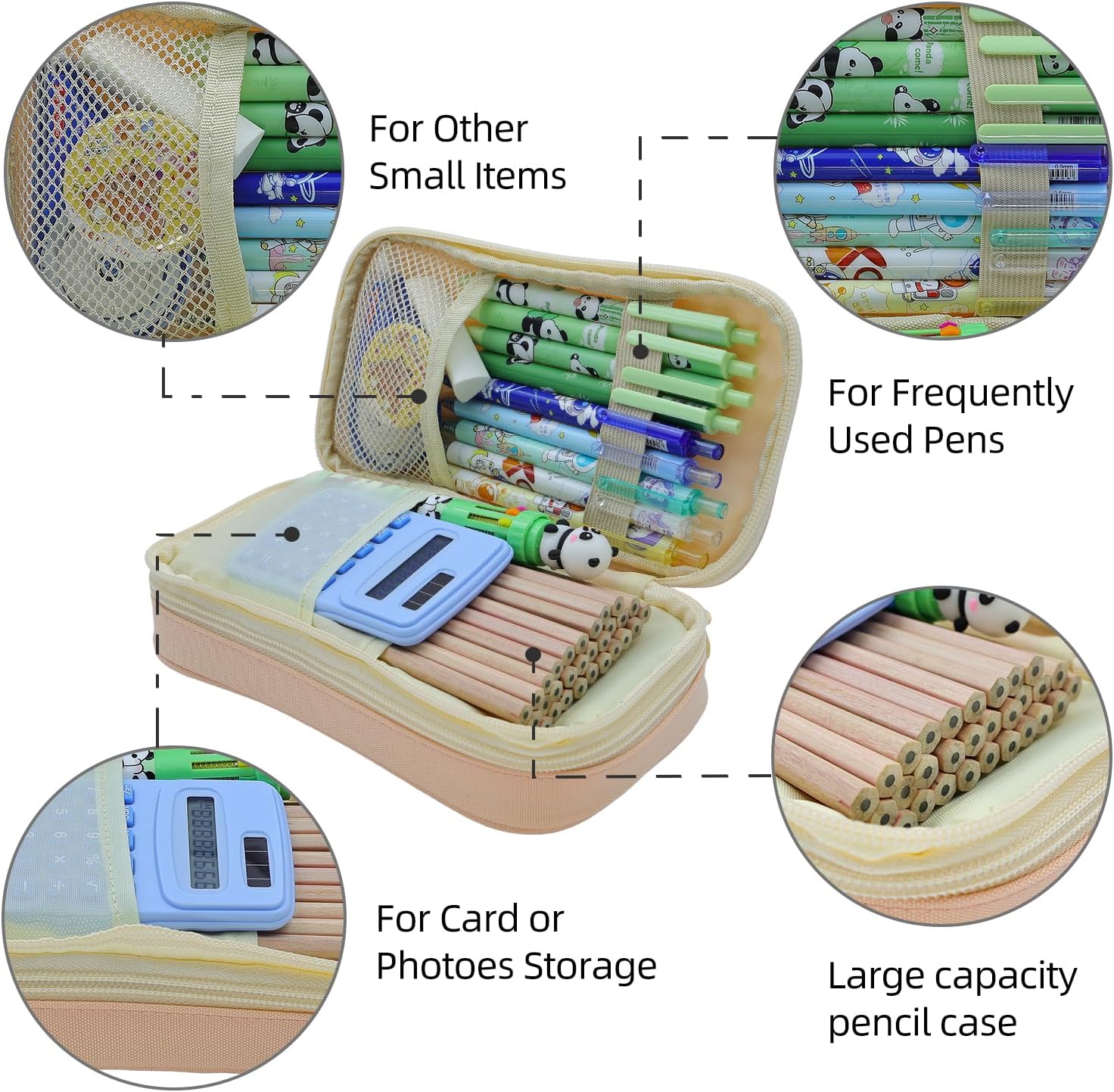 - 【Huge Capacity Pencil Bag】Fits 50+ pens or 70 pencils! This pencil case has a big storage capacity of 8.66 x 1.97 x 3.95 inches with multiple compartments for calculators, rulers, and small gadgets. No more cramped storage!