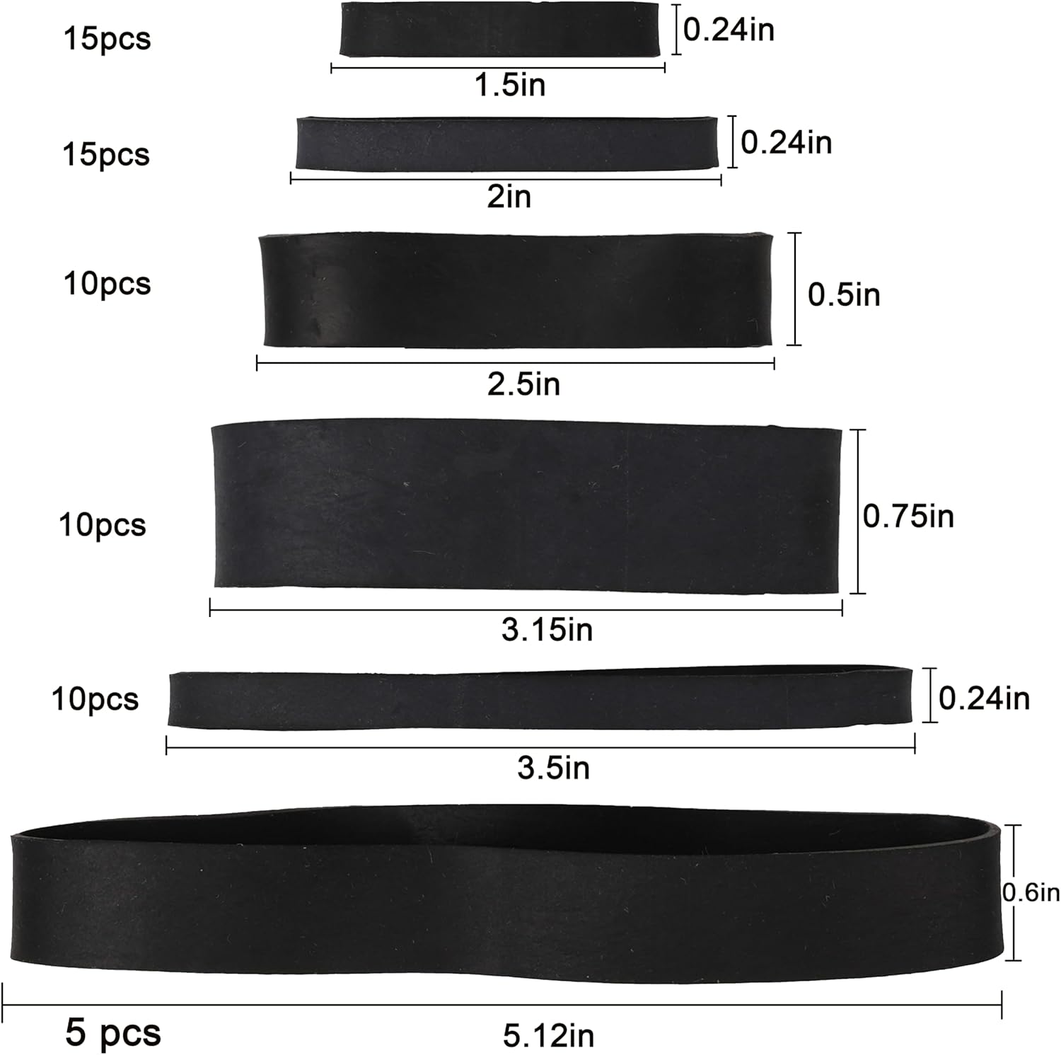65Pcs Rubber Bands Assorted Sizes Black 6 sizesMixed wide Elastic Bands for for Survival Office Supply Tactical Rubber Bands
