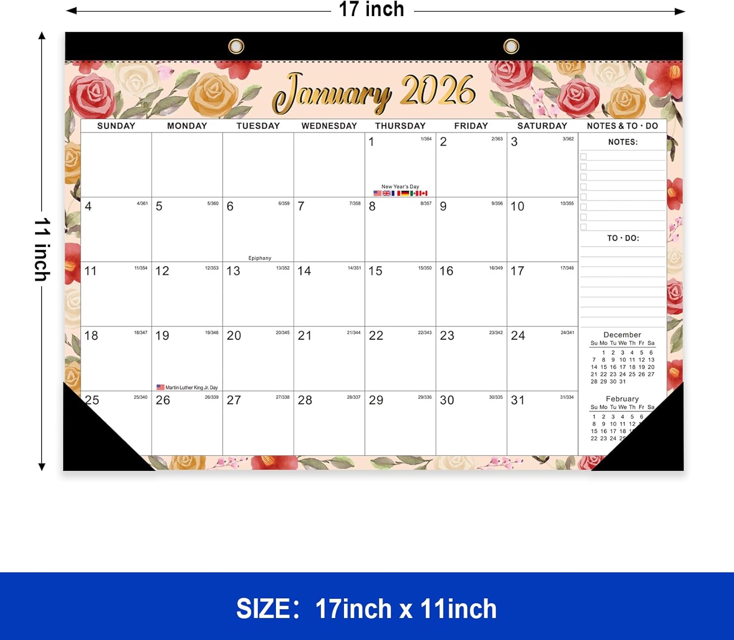 - 12 Months of Vibrant Planning (Jan 2026 - Dec 2026): Stay effortlessly organized with this 12" x 17" wall calendar featuring 6 stunning artistic patterns. Perfectly track appointments, deadlines, birthdays, highlighted US federal holidays, and all your important dates at a glance for over a year.