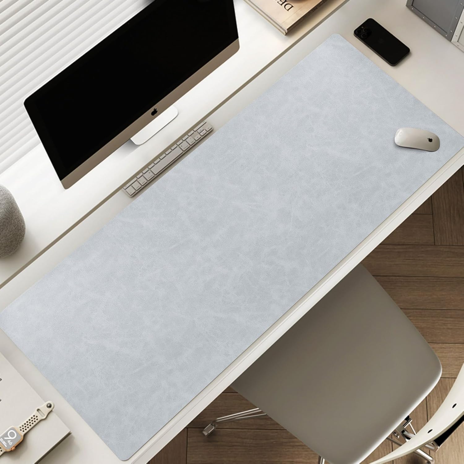 Leather Desk pad for Computer and laptops, Ideal for Gaming and Office use, Large Mouse pad and Keyboard mat,Desk mat for Man. A complimentary Wrist pad and Phone Stand.(Gray-White, 15.7"x 31.5")