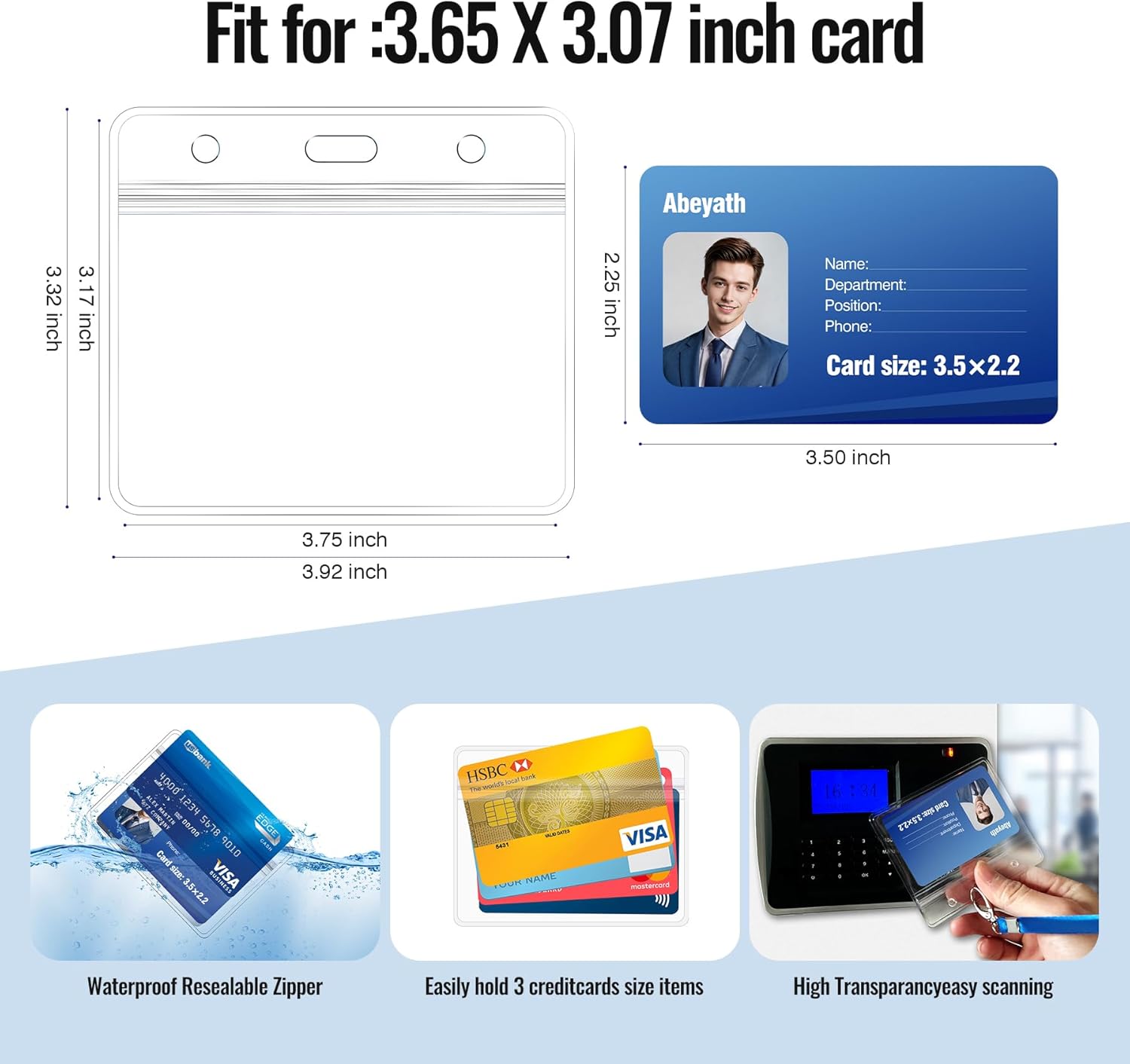 - Waterproof and Dustproof: Easily open and close with the excellent resealable ziplock closure. This waterproof and dustproof id card holder is great to keep your important paper badges or cards dry, clean and secure.