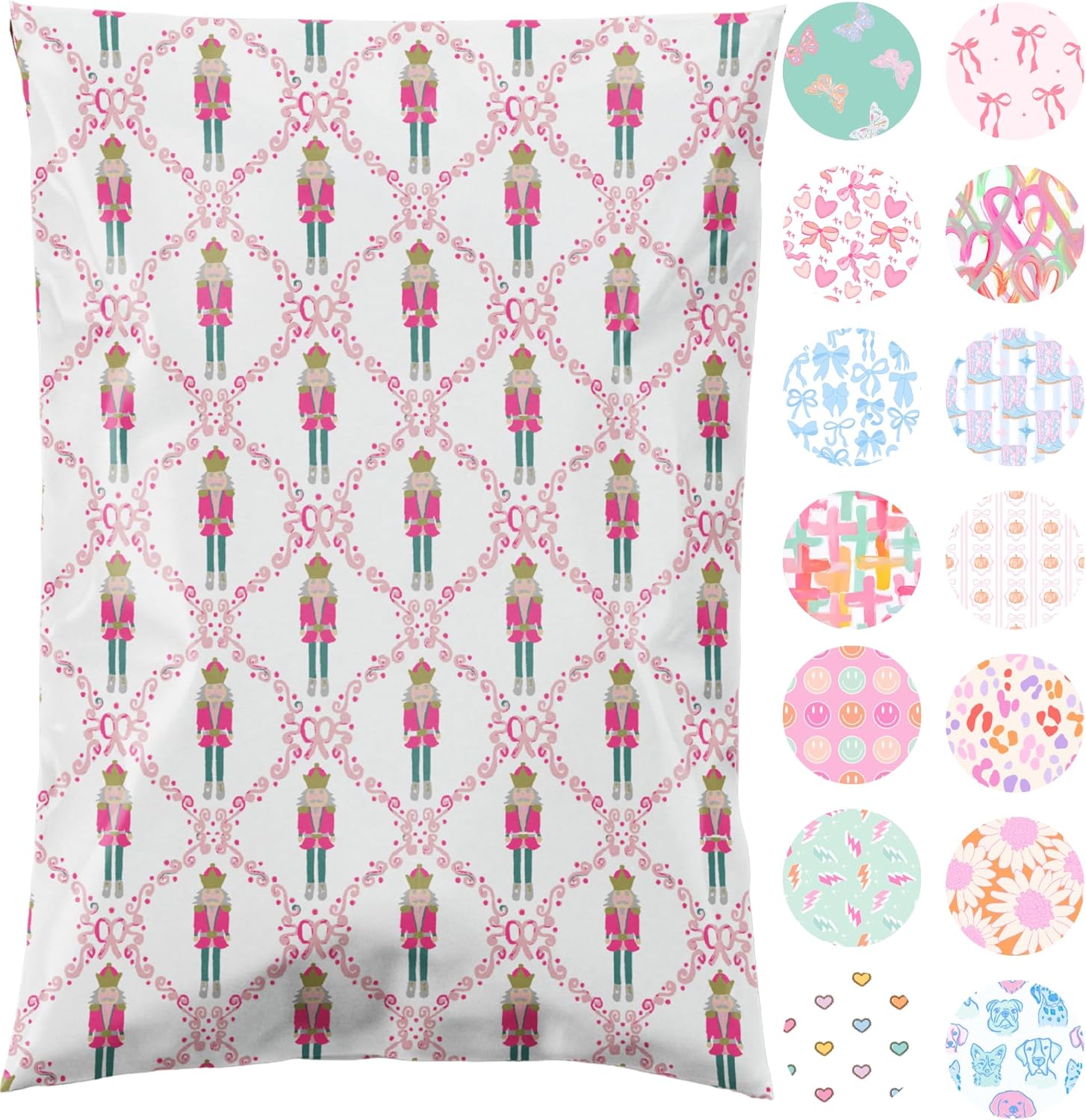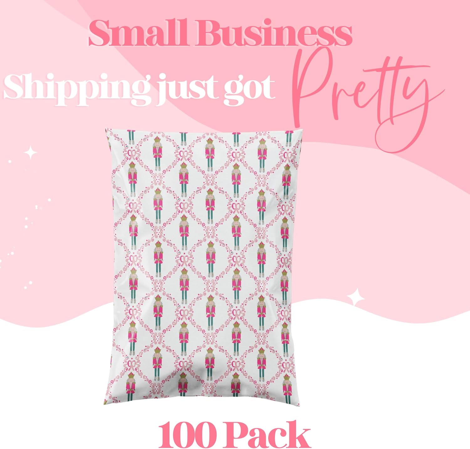 14.5x19 Designer Poly Mailer 100 Pack Heavy Duty Waterproof Self Seal Shipping Bags for Small Business Large Mailing Envelopes Bulk Tear Resistant Packaging Pink Nutcracker Christmas Holiday