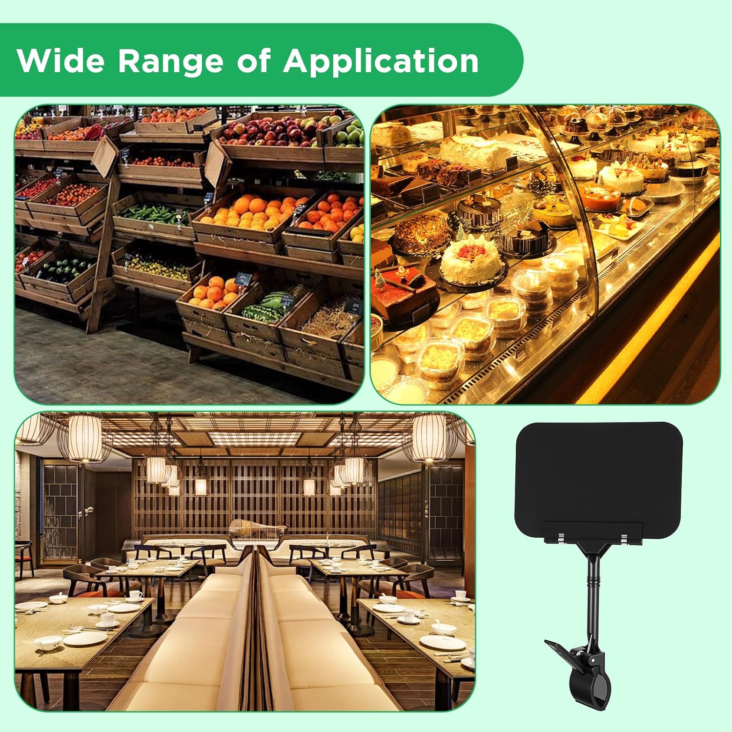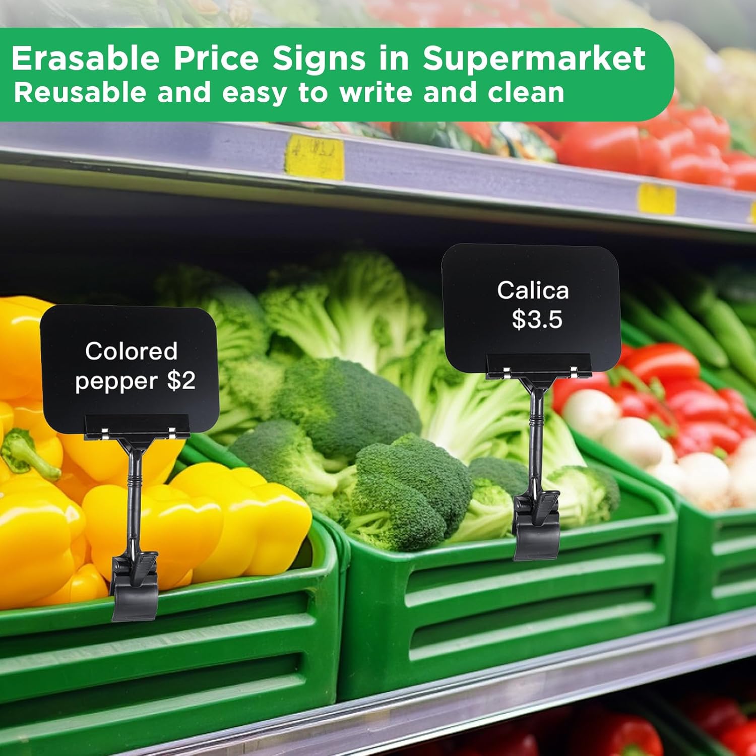 - Quantity and Quality: offering quantity without compromising quality, the package includes 30 chalkboard signs and 30 double head display clip holders, offering ample amount for your needs; Each clip sign holder boasts the robust build, thanks to the ABS material; These price tags' distinctive features offer practicality and functionality, making them stand out