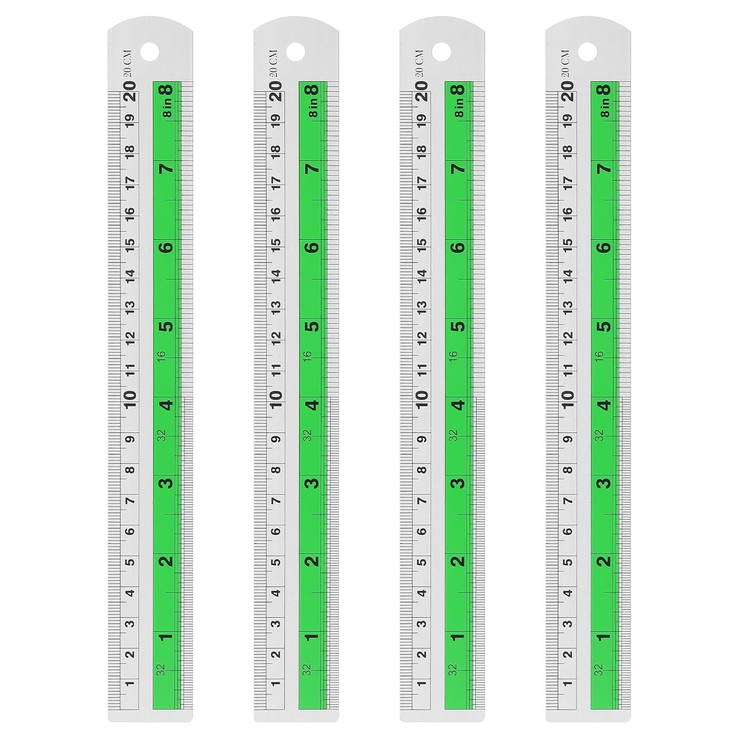 HARFINGTON 4pcs Metal Straight Ruler 20cm Metric SAE Aluminum Alloy Measuring Rulers Scale Tool with Hole for Measure Study Reading Classroom Office, Green