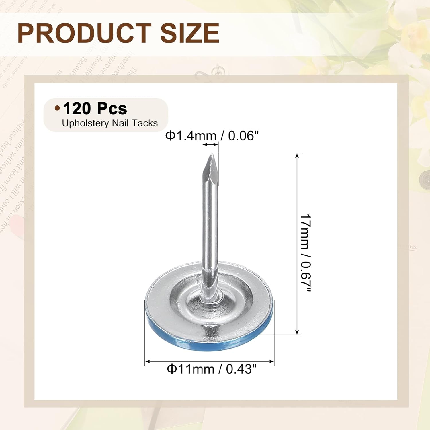 - [Size & Quantity] - The package comes with 120pcs decorative upholstery tacks. Sufficient quantity to meet your different daily needs. The overall size of upholstery nails is about 11mm x 13mm/0.43-inch x 0.51-inch(D*H)