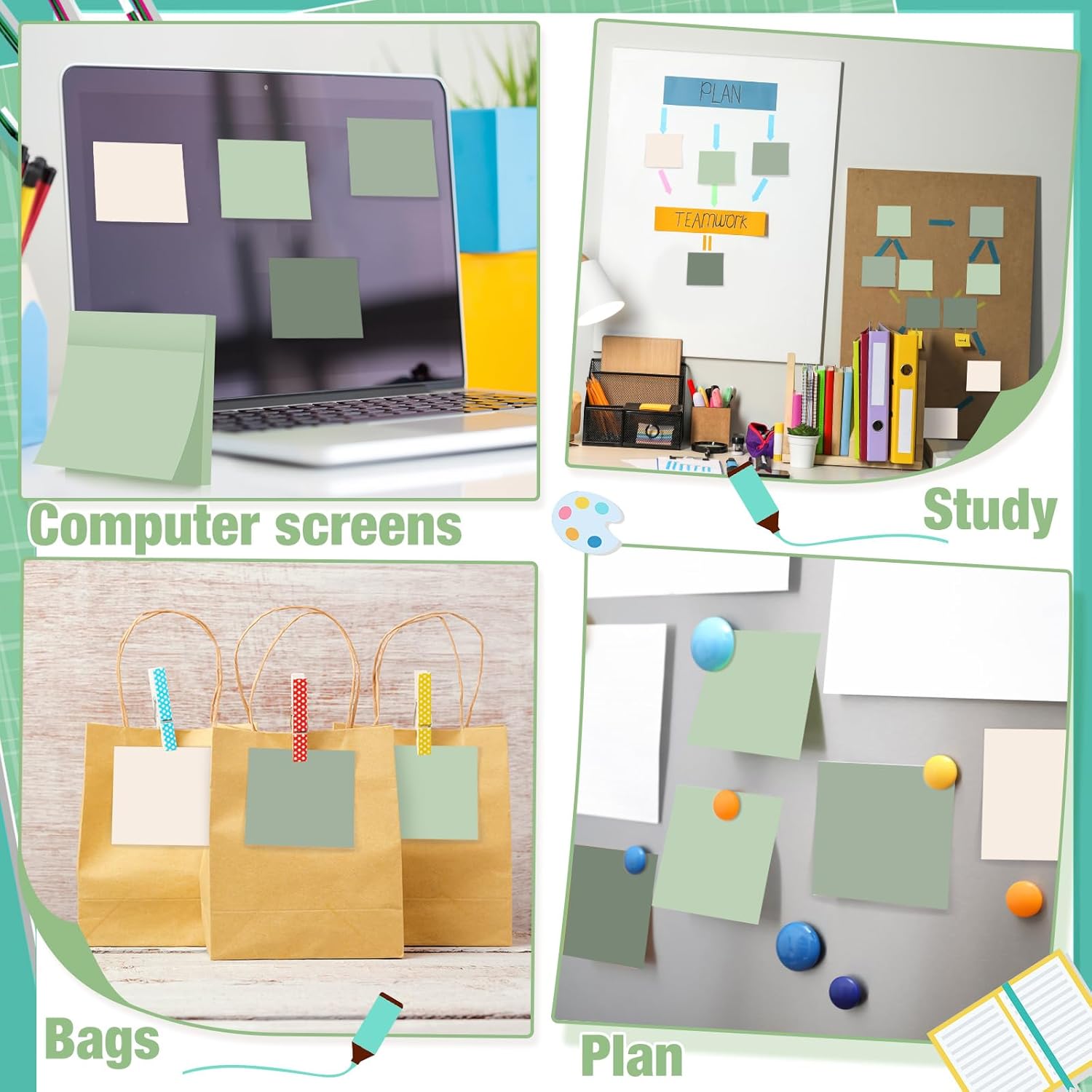 - Easy to use: colorful sticky notes are easy to use, you can write some information on the sticky notes and stick them on smooth surfaces such as computer monitors, binders, desks, and so on. ; They are also suitable for school, office and home use