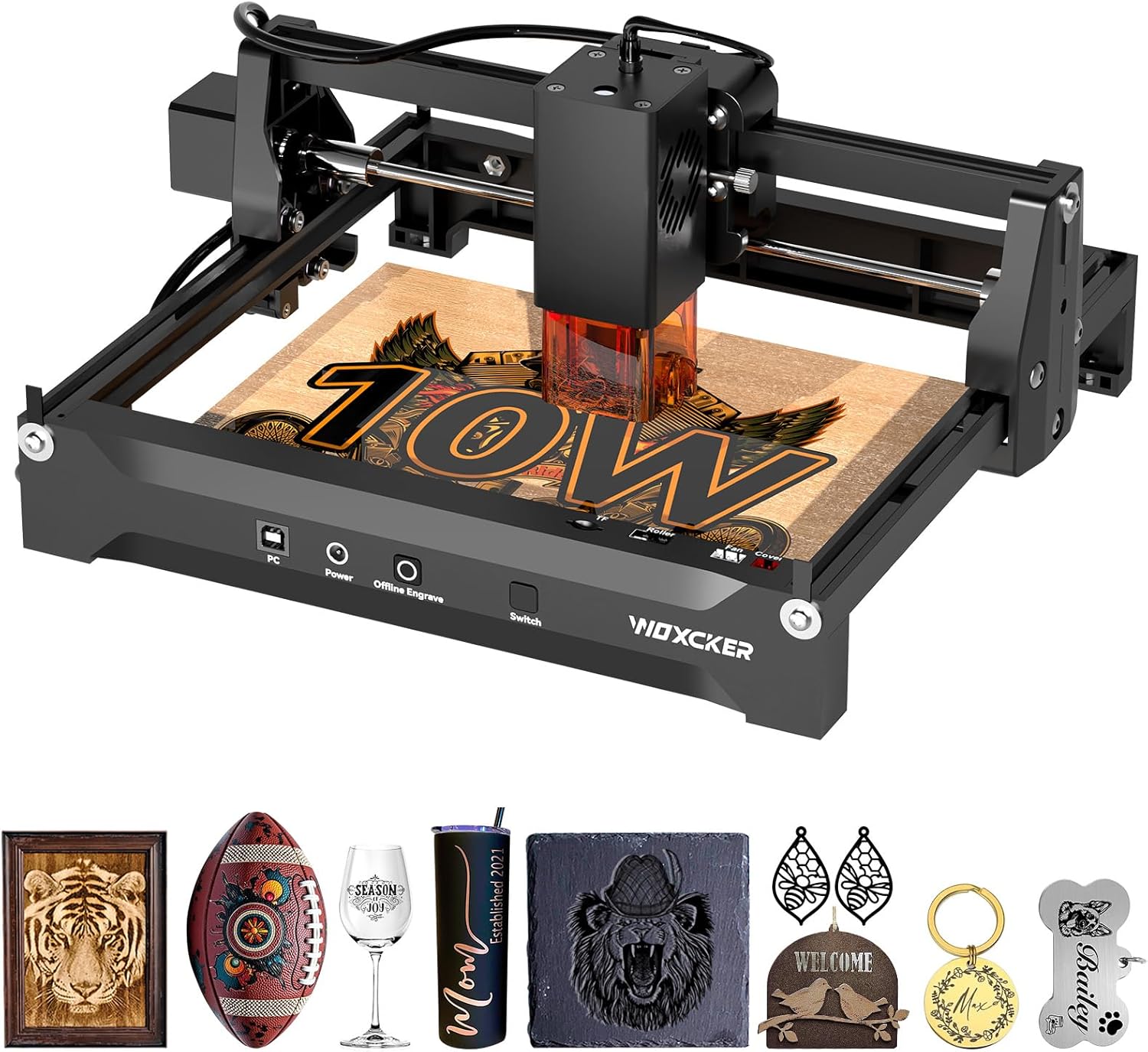 Laser Cutter and Engraver Machine, Woxcker L2 Mini 10W High-Precision No Need Installation for Metal, Wood, Acrylic, Leather, Glass Support Expansion Module (Class 1 Output Wattage: 10000 mW)