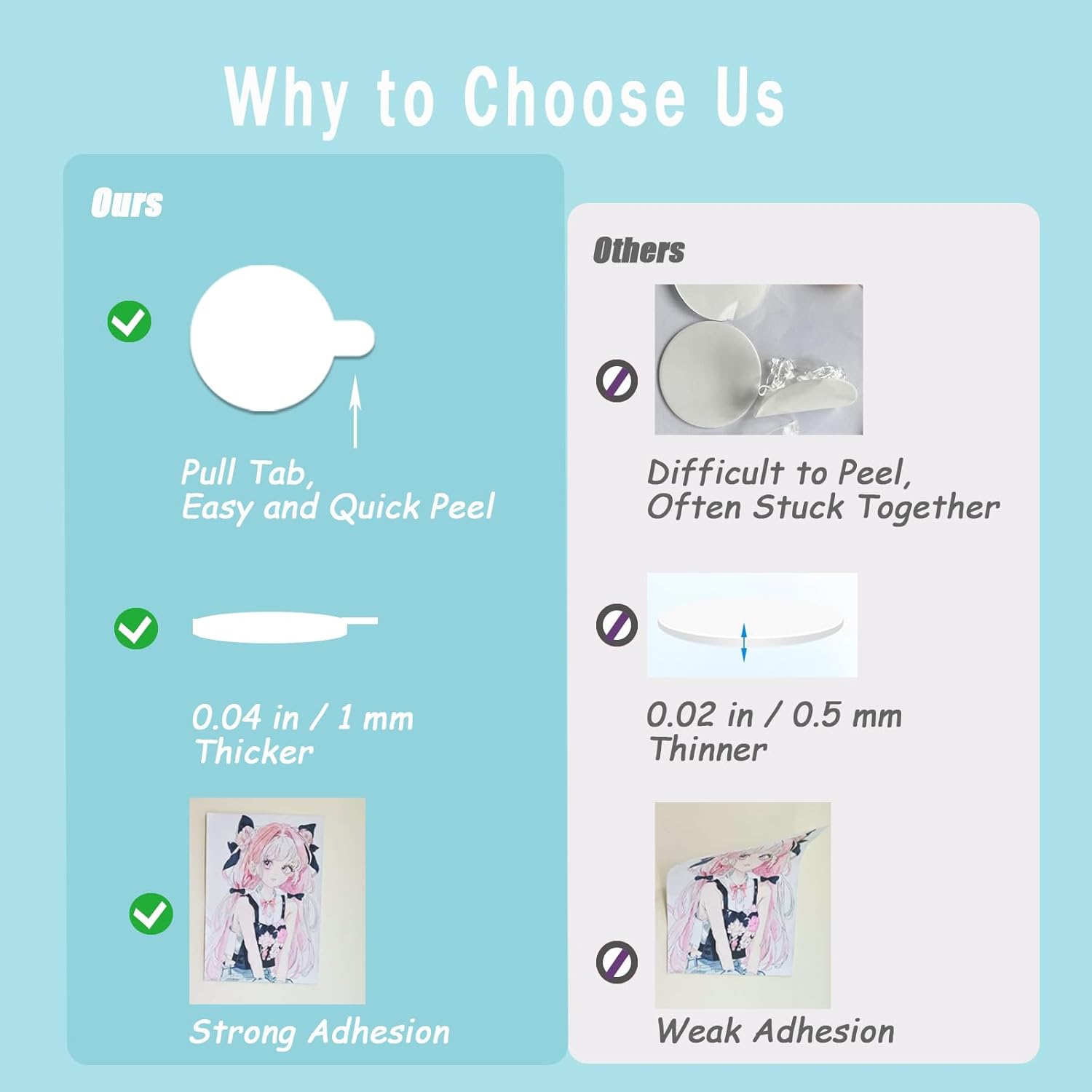 - 【Upgraded Handle Design for Easy Use】Each museum putty round sticky dots has a white protective film with an easy-to-grip handle for quick and easy peeling. Simply stick the double-sided sticky dot where needed, peel off the protective film and press to secure. No extra tools, no punching, cutting, etc. required!